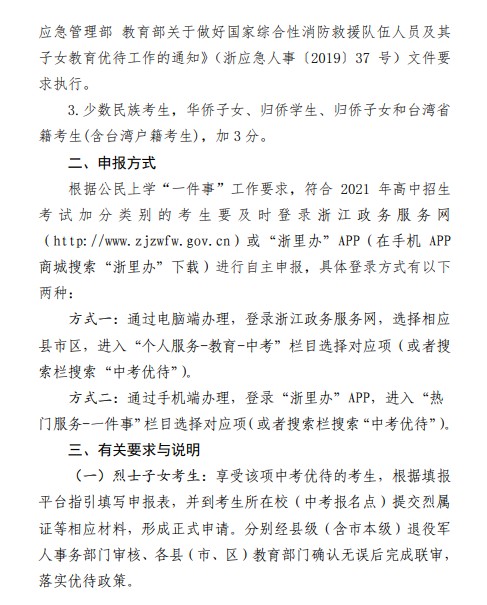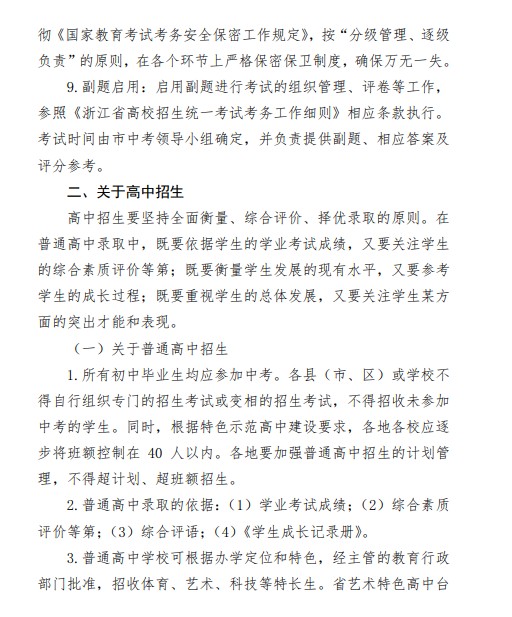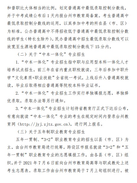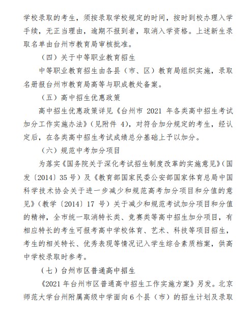 台州市教育局:2021年浙江台州初中毕业生学业考试与高中招生