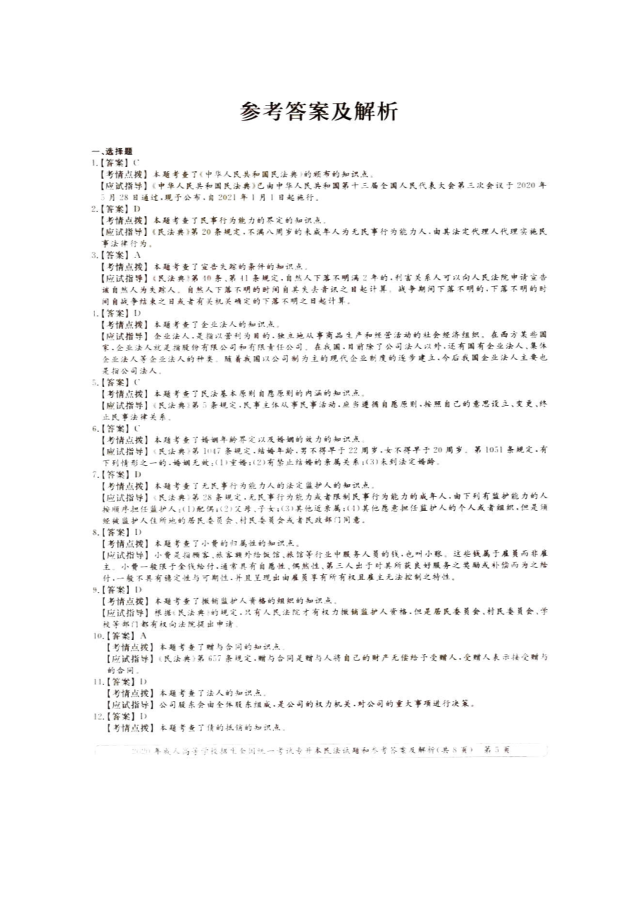 【文档名称】 2020年陕西成人高考专升本民法真题及答案(图片版).doc