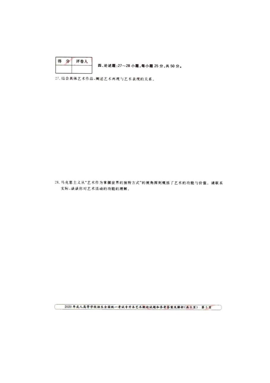 【文档名称】 2020年陕西成人高考专升本艺术概论真题及答案(图片版).doc