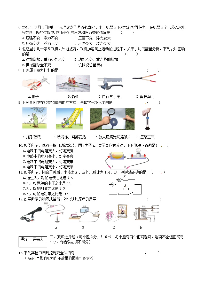 【文档名称】 2016年黑龙江鹤岗中考物理真题及答案(Word版).doc