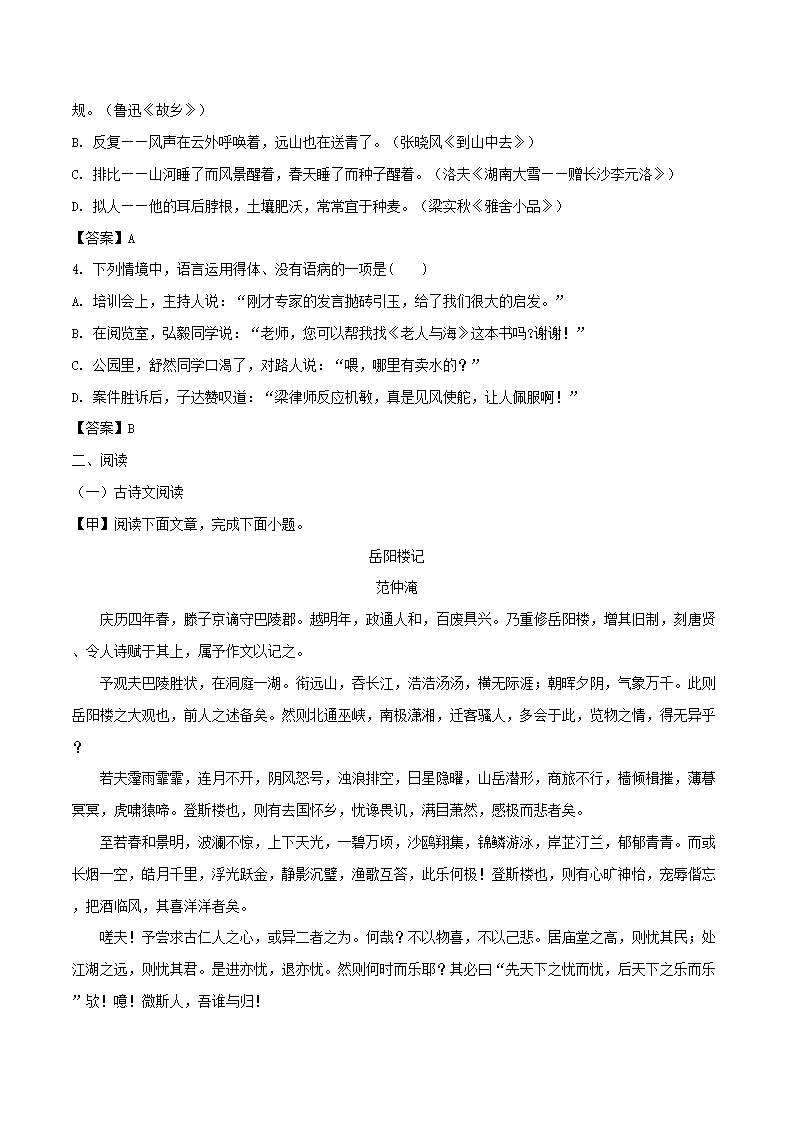 【文档名称】 2018年吉林吉林市中考语文真题及答案(Word版).doc