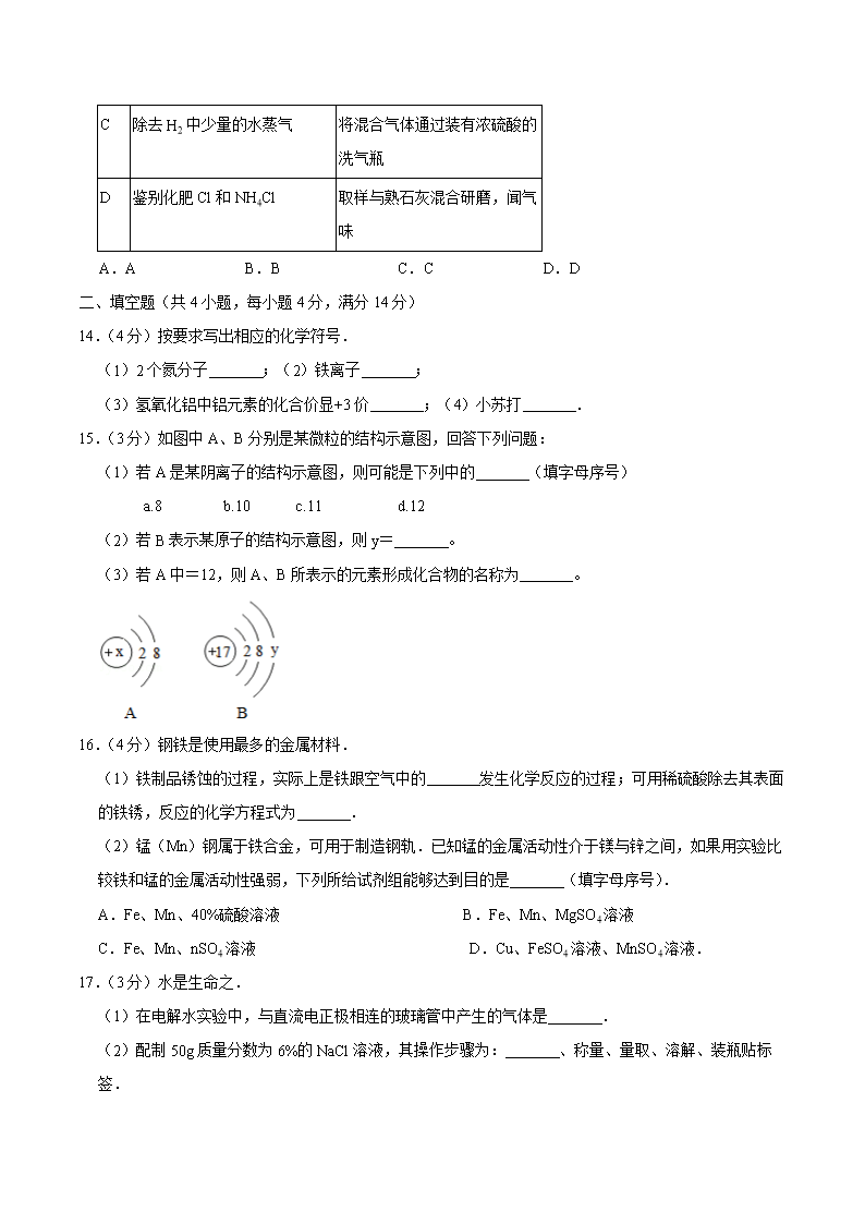 【文档名称】 2017年青海省西宁中考化学真题及答案(Word版).doc