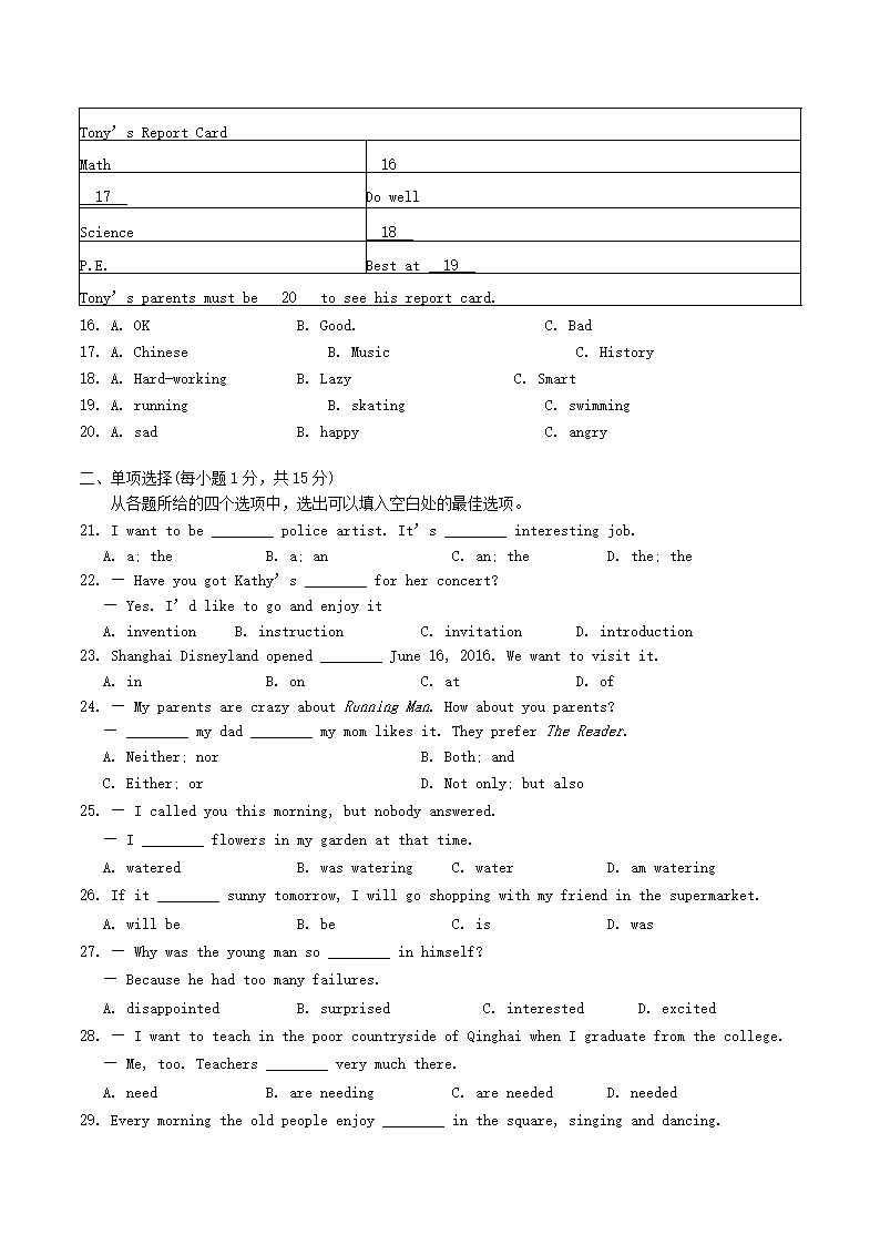 【文档预览】 无忧考网整理发布2017年青海省西宁中考英语真题及答案(Word版),前五页预览如下: