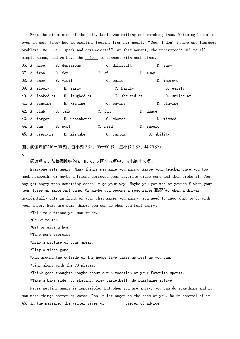 【文档名称】 2017年青海省西宁中考英语真题及答案(Word版).doc