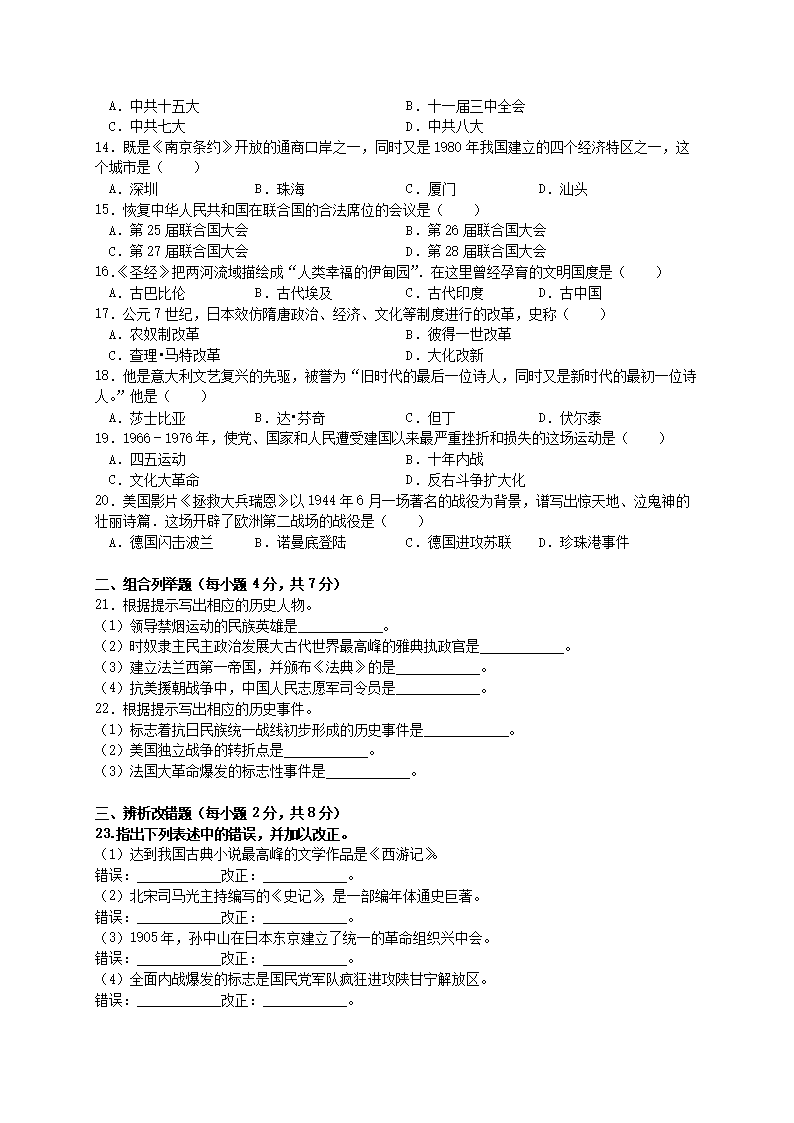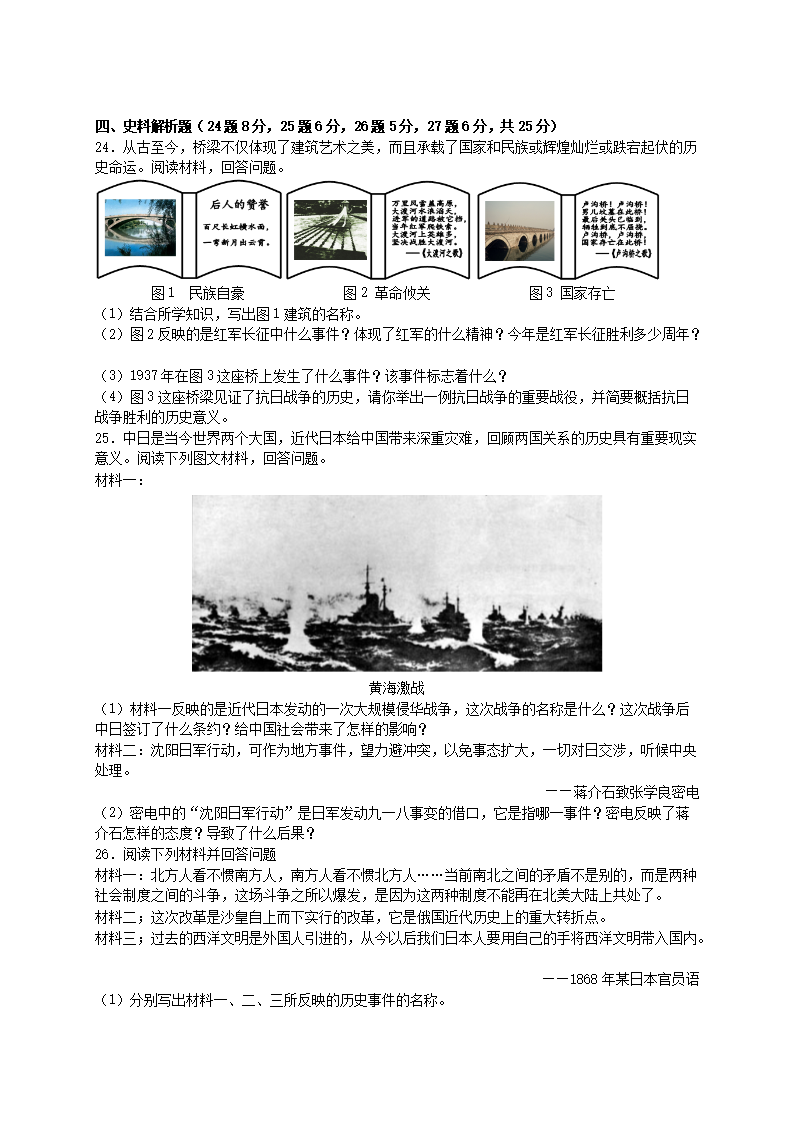 【文档预览】 无忧考网整理发布2016年黑龙江七台河中考历史真题及答案(Word版),前五页预览如下: