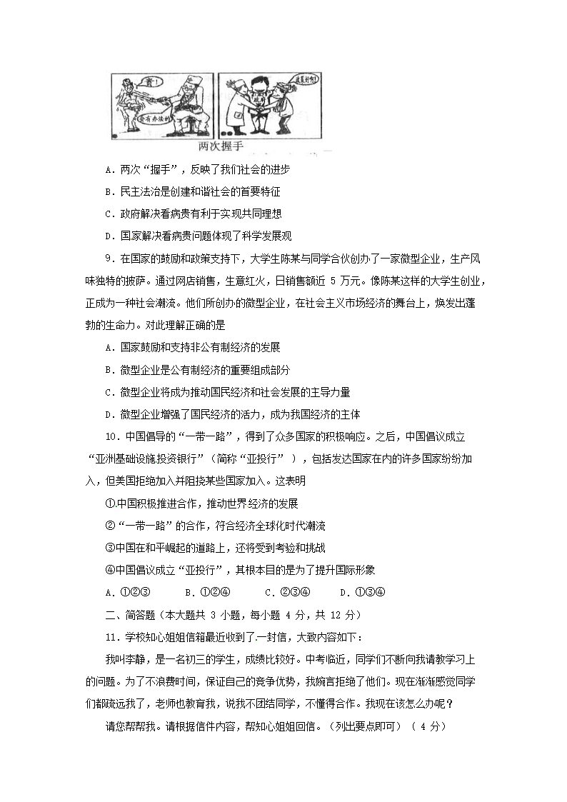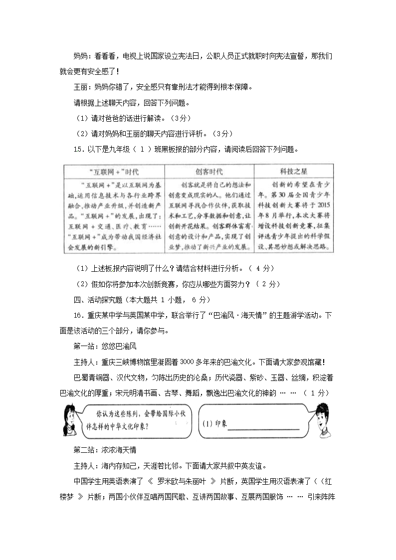 【文档名称】 2015年重庆江津中考道德与法治真题及答案B卷(Word版).doc