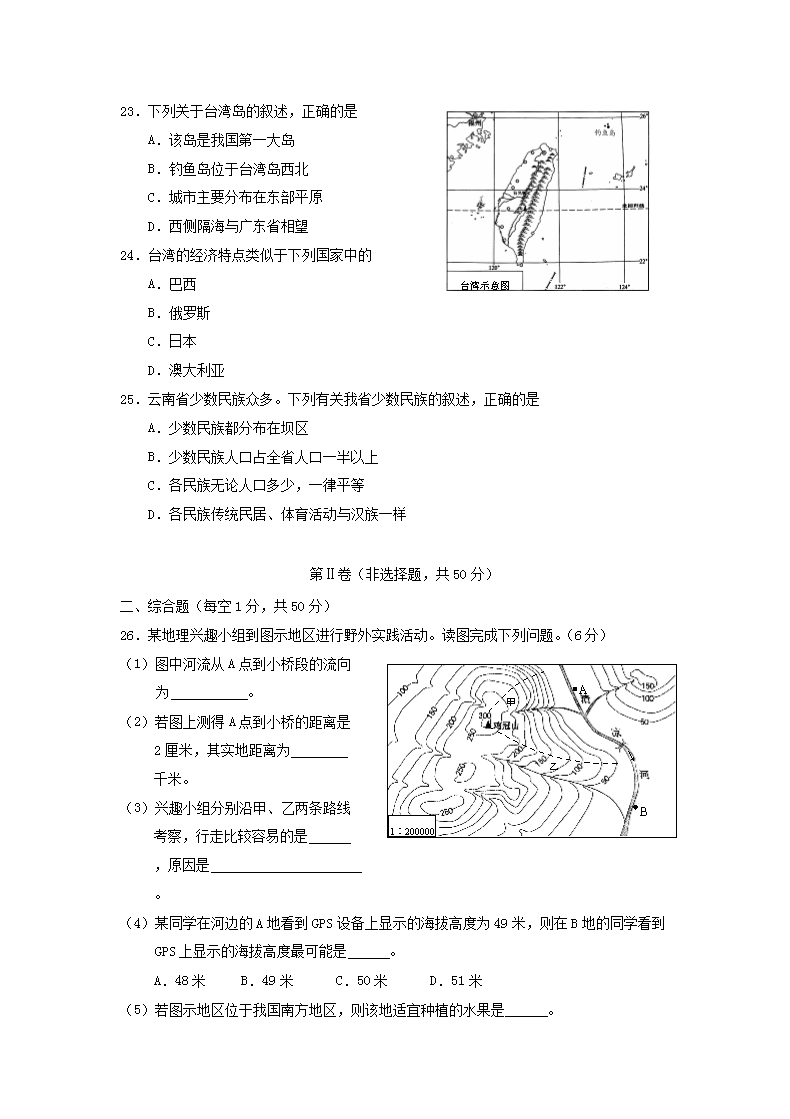 【文档名称】 2015年云南德宏中考地理真题及答案(Word版).doc