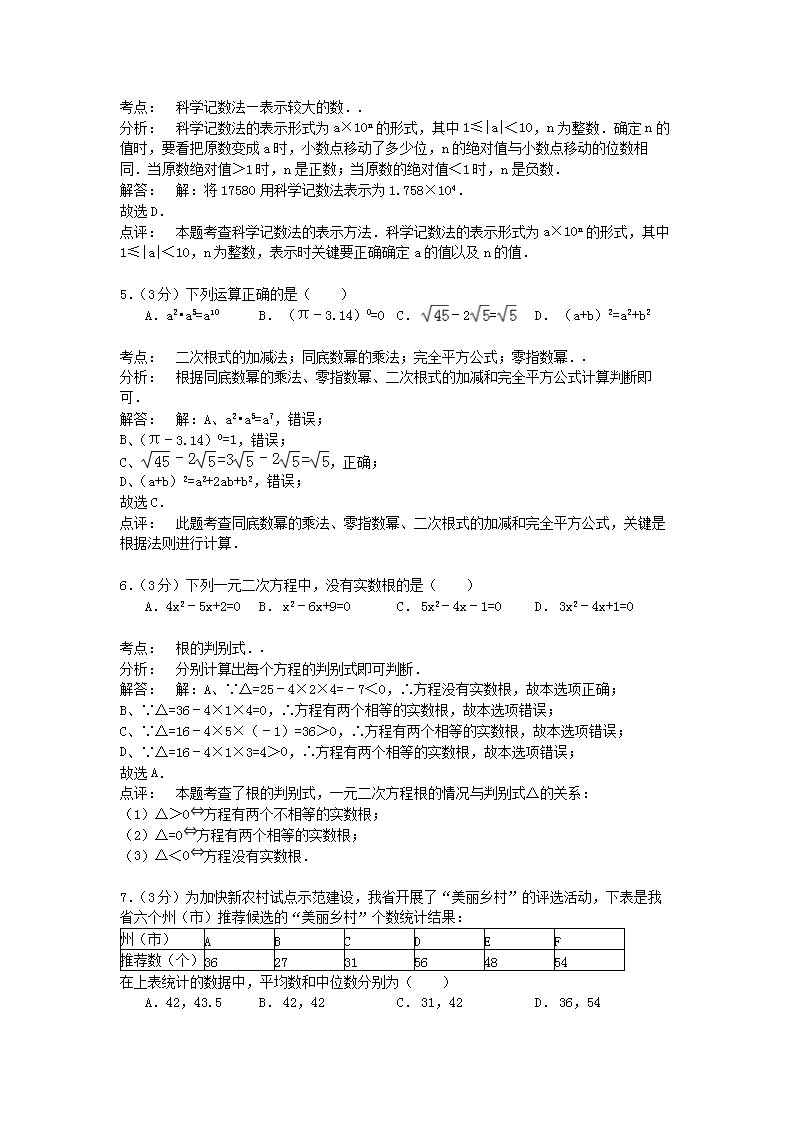 【文档名称】 2015年云南迪庆中考数学真题及答案(Word版).doc