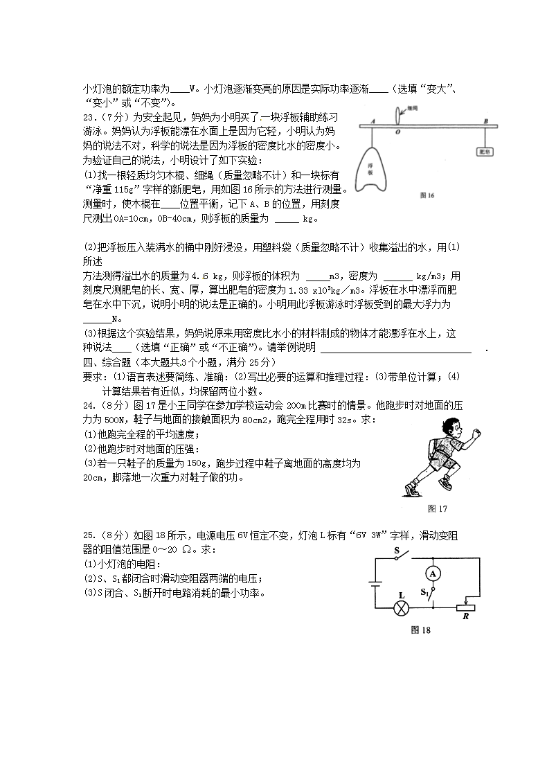 【文档名称】 2015年云南迪庆中考物理真题及答案(Word版).doc