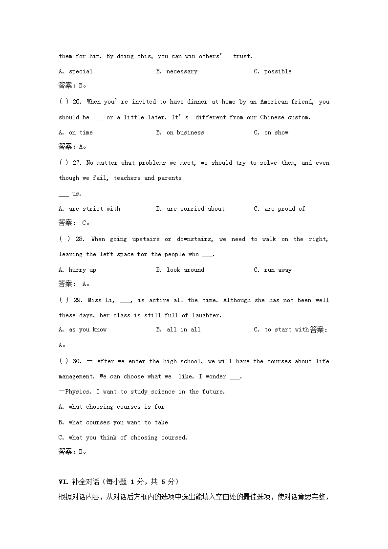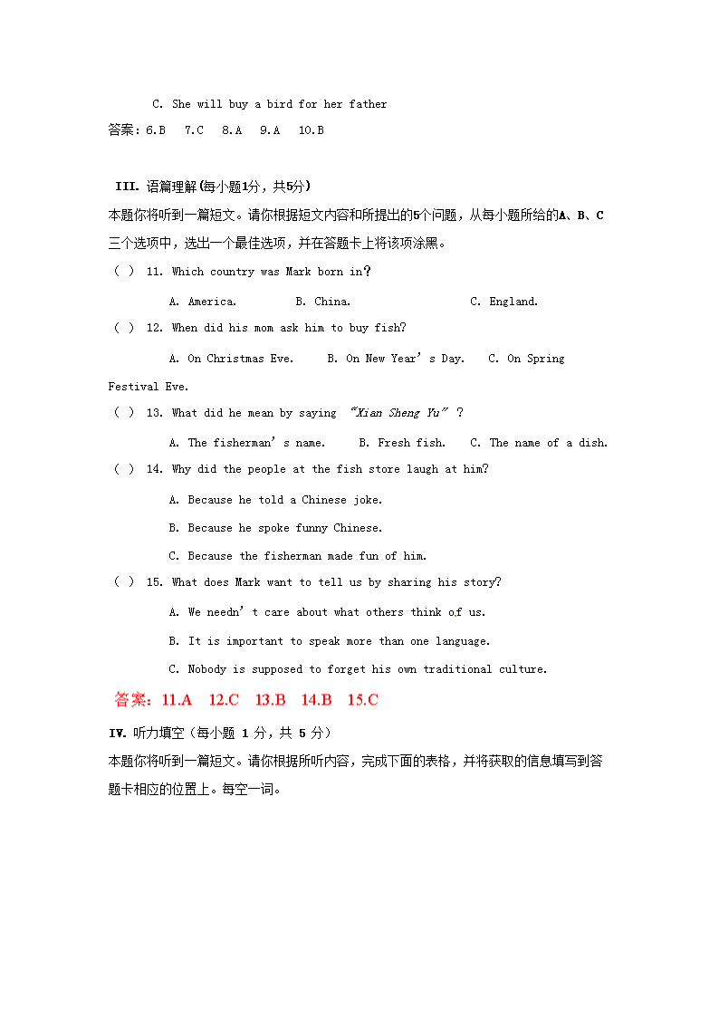 【文档预览】 无忧考网整理发布2017年山西阳泉中考英语真题及答案(Word版),前五页预览如下: