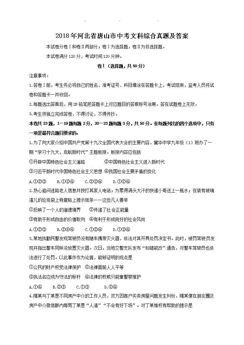 【文档名称】 2018年河北省唐山市中考文科综合真题及答案(Word版).doc