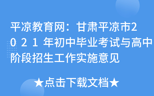 关于印发《平凉市2021年初中毕业考试与高中阶段招生工作实施意见》等相关文件的通知