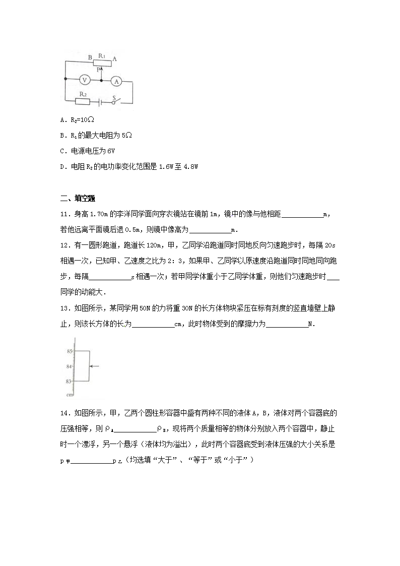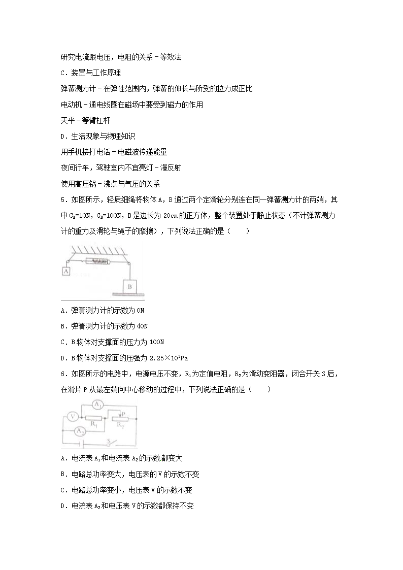 【文档名称】 2016四川省达州市中考物理真题及答案(Word版).doc
