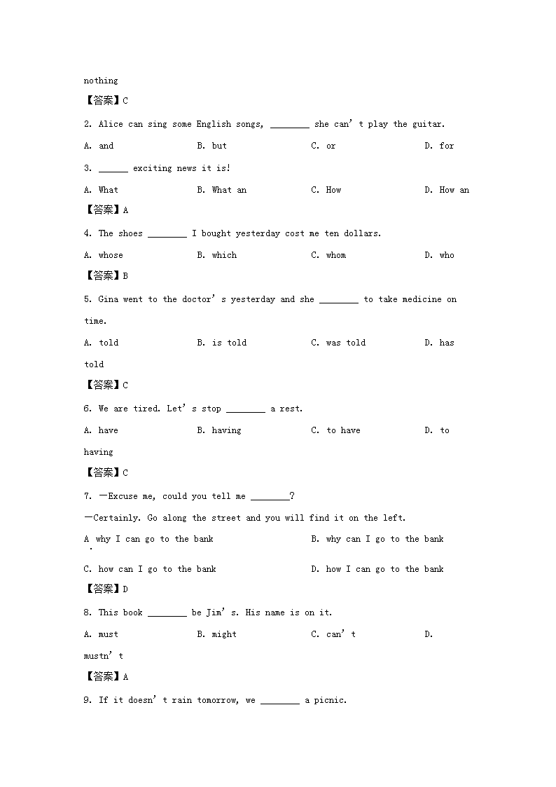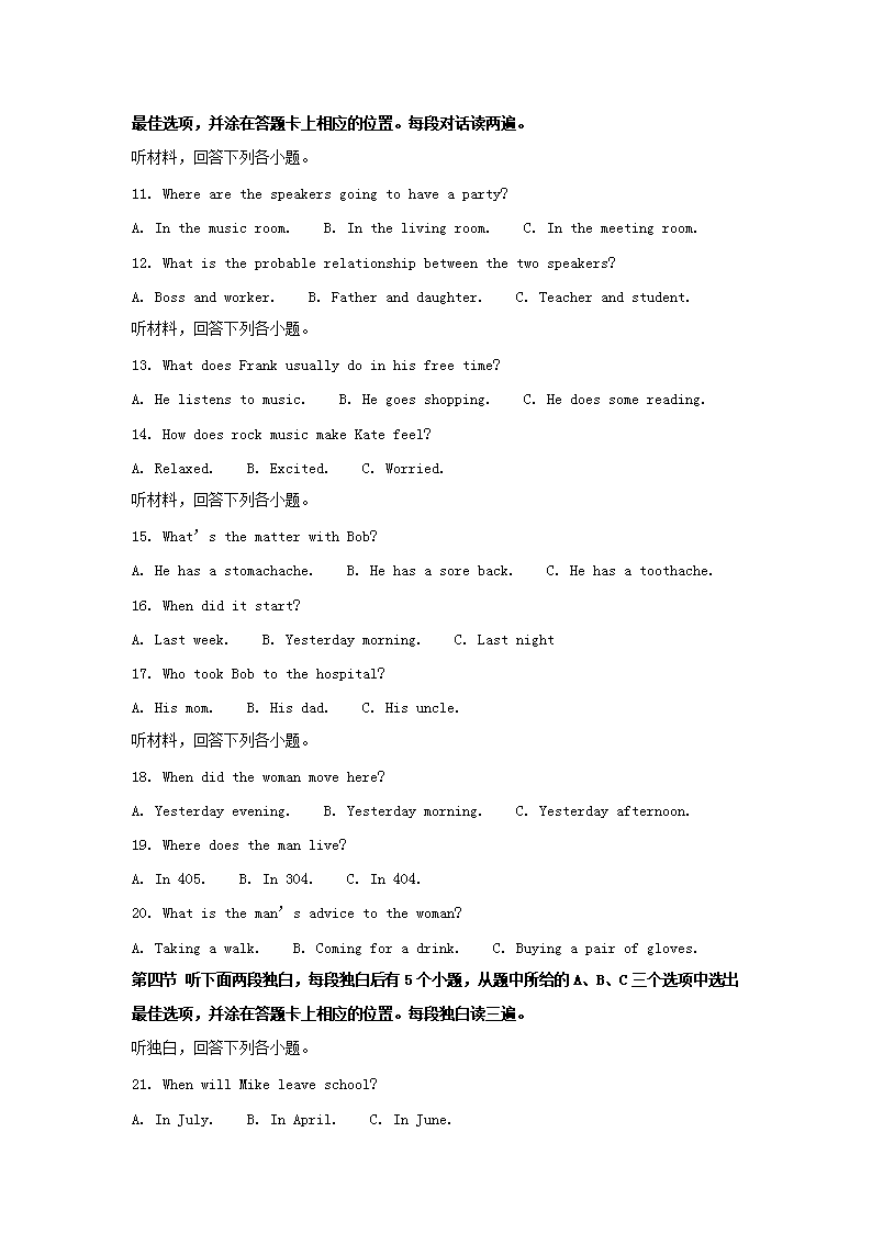 【文档名称】 2020四川省巴中市中考英语真题及答案(Word版).doc