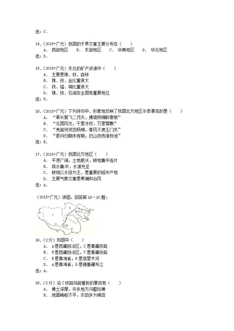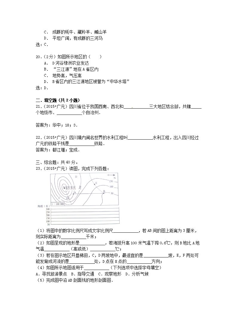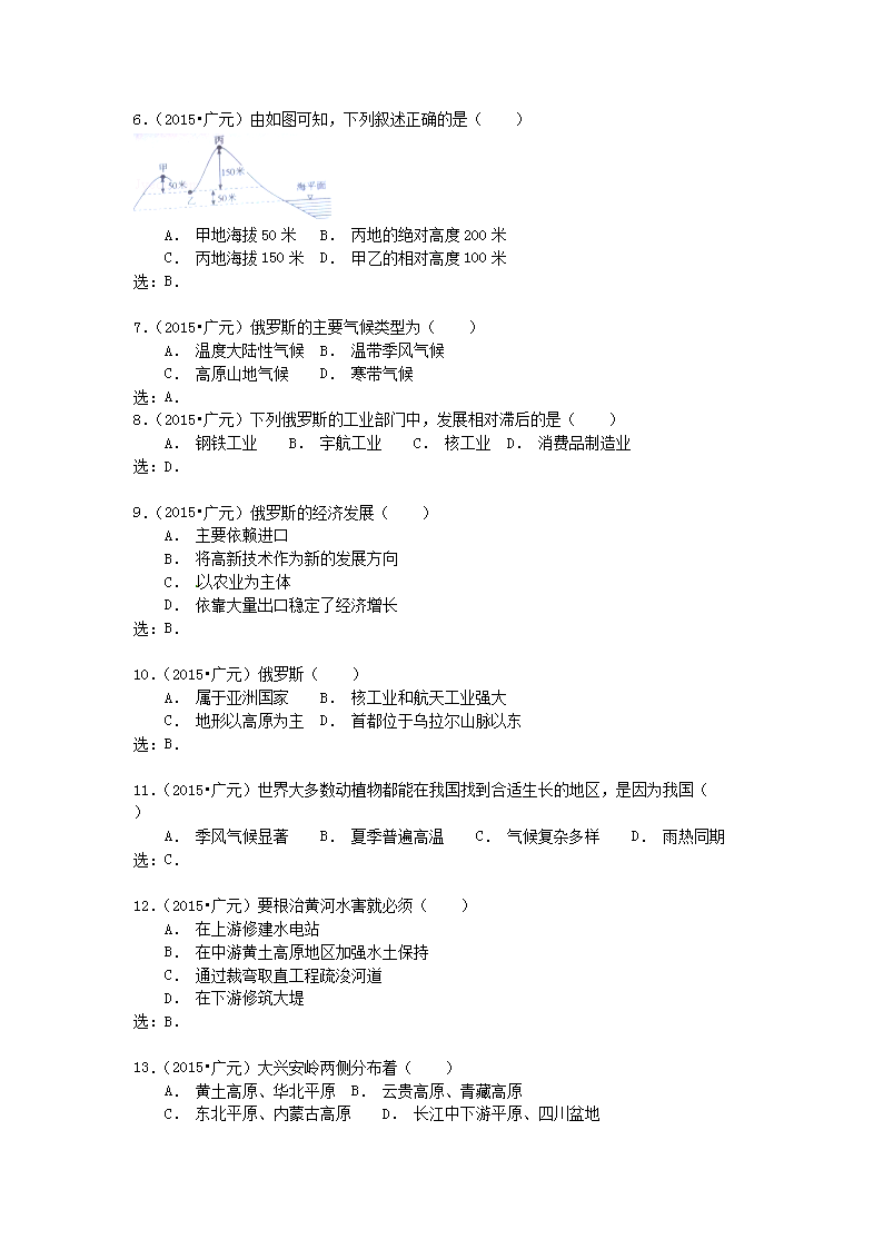 【文档名称】 2015四川省广元市中考地理真题及答案(Word版).doc