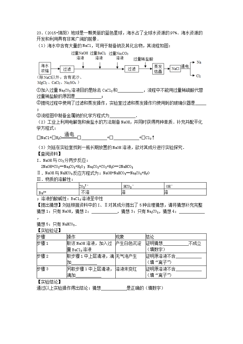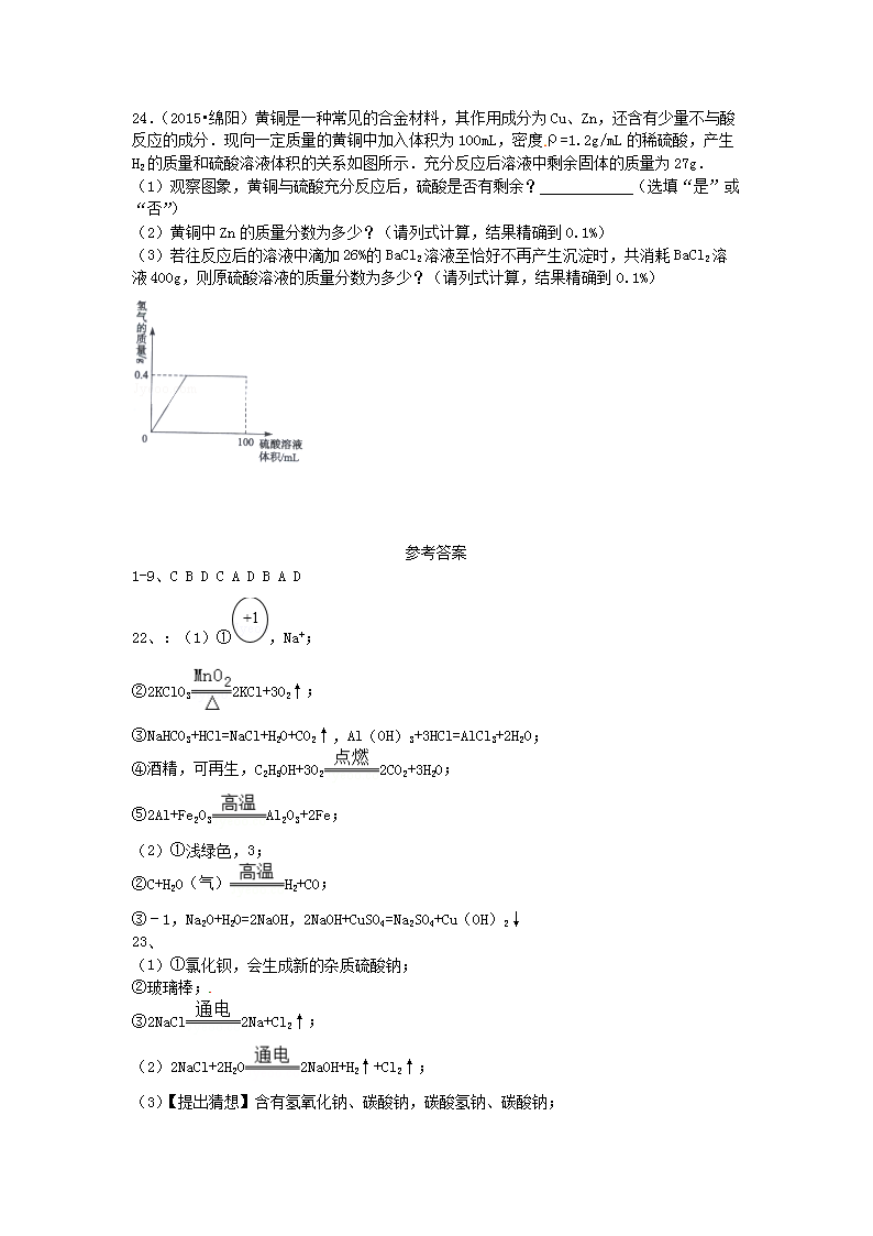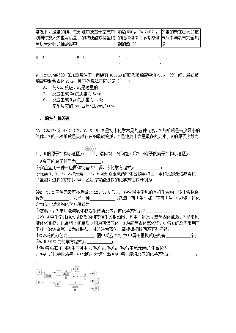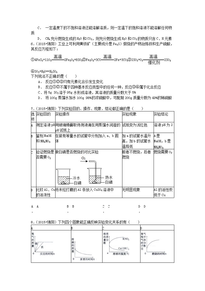【文档名称】 2015四川省绵阳市中考化学真题及答案(Word版).doc