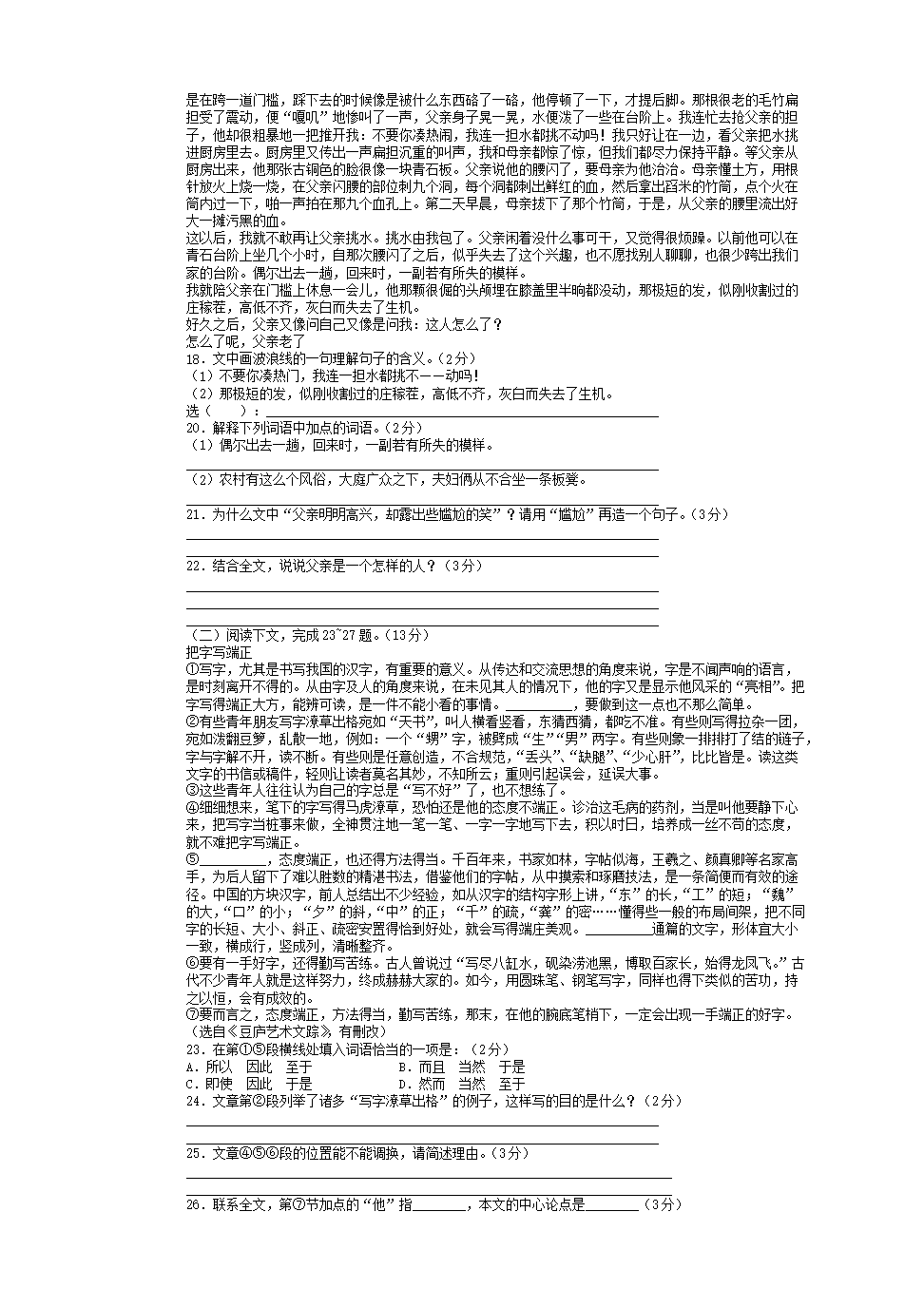 【文档预览】 无忧考网整理发布2018青海省黄南中考语文真题及答案(Word版),前五页预览如下: