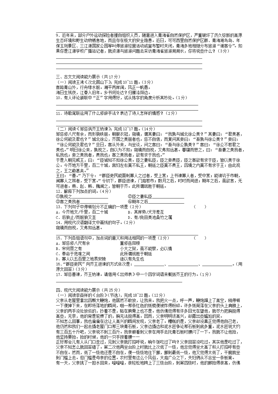 【文档名称】 2018青海省玉树中考语文真题及答案(Word版).doc