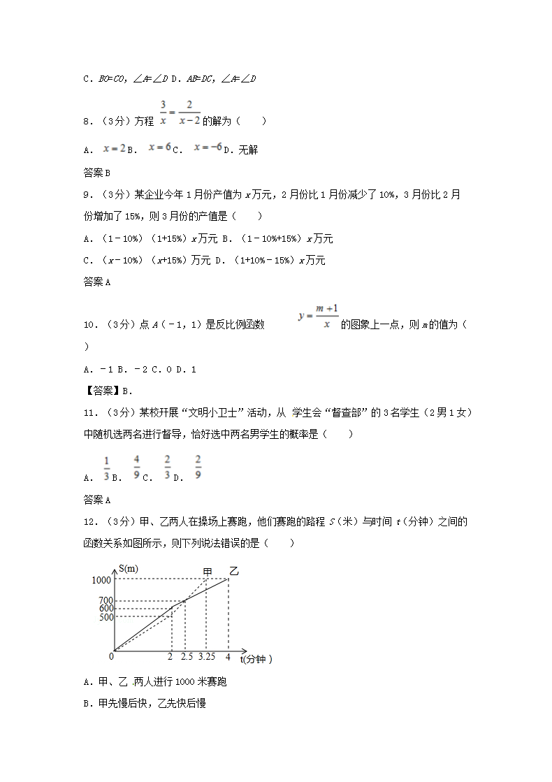 【文档名称】 2015年海南海口中考数学真题及答案(Word版).doc