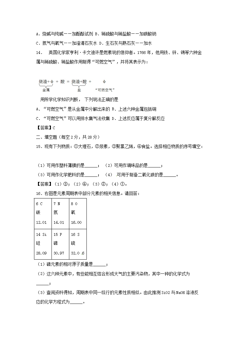 【文档名称】 2017年海南海口中考化学真题及答案(Word版).doc