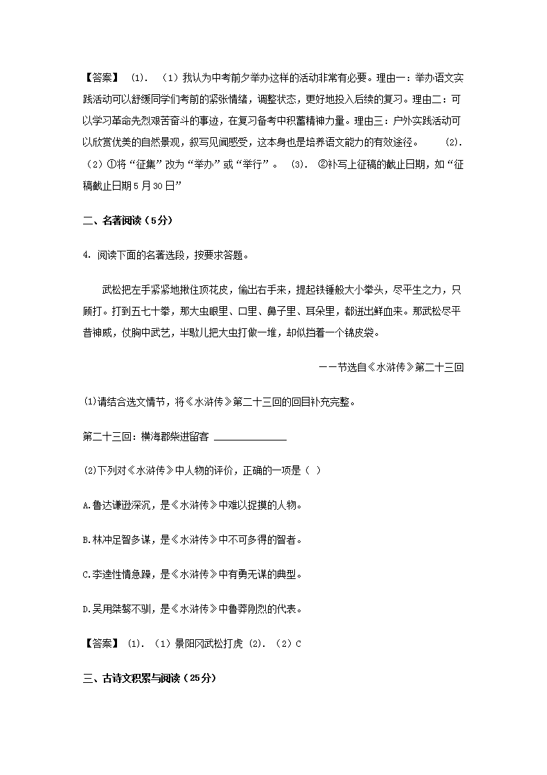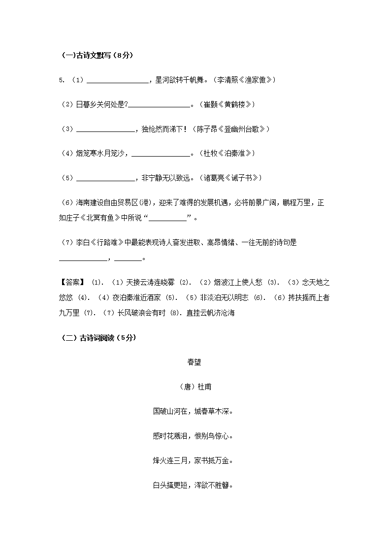 【文档预览】 无忧考网整理发布2019年海南海口中考语文真题及答案(Word版),前五页预览如下: