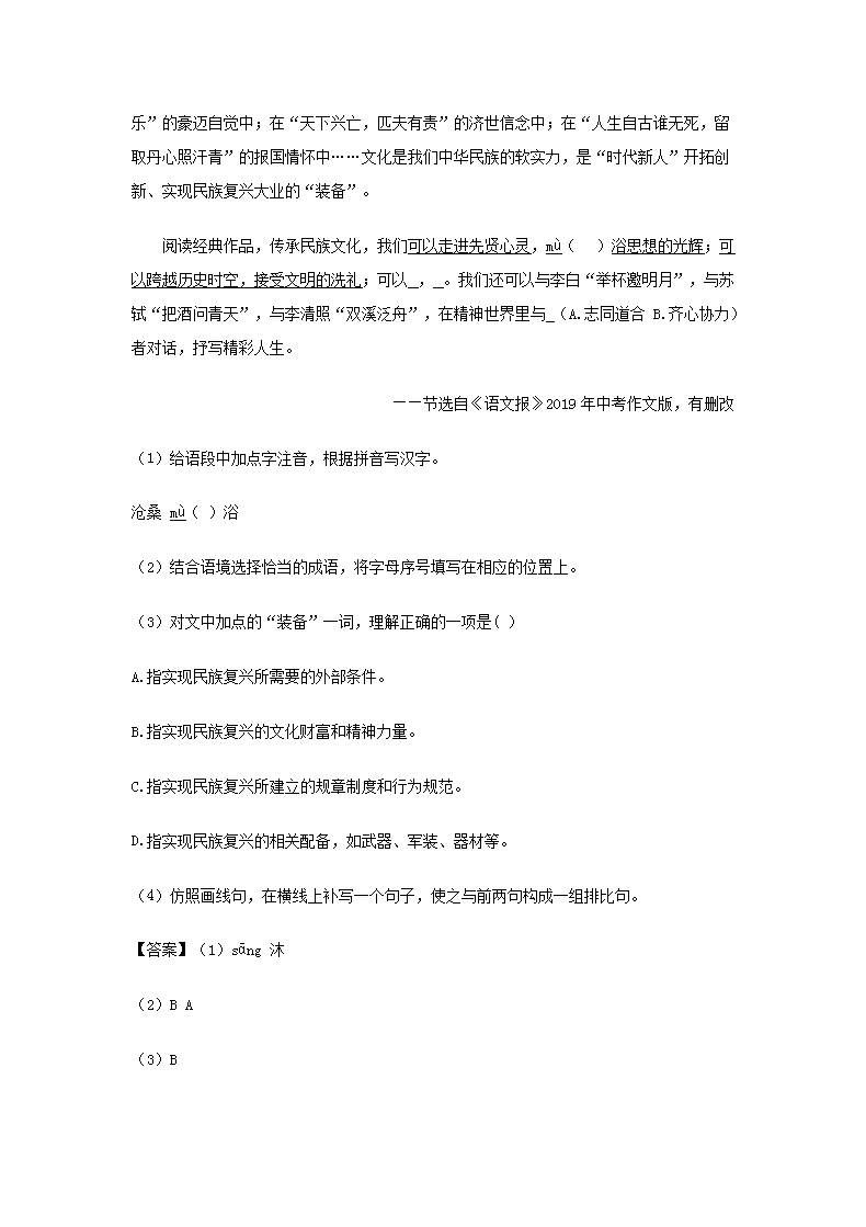 【文档名称】 2019年海南海口中考语文真题及答案(Word版).doc
