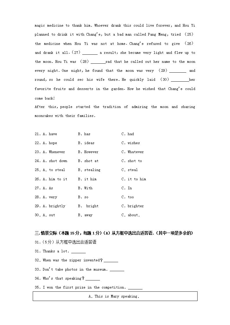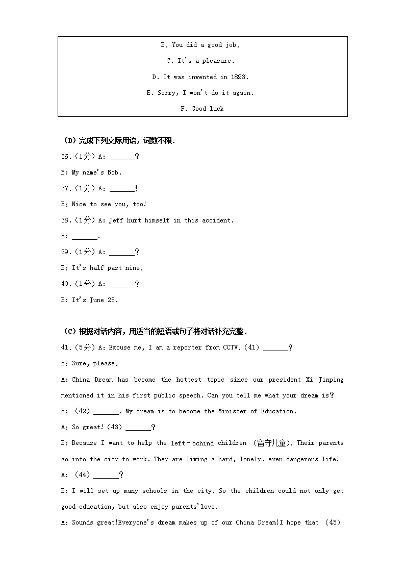 【文档名称】 2016年黑龙江绥化市中考英语真题及答案(Word版).doc