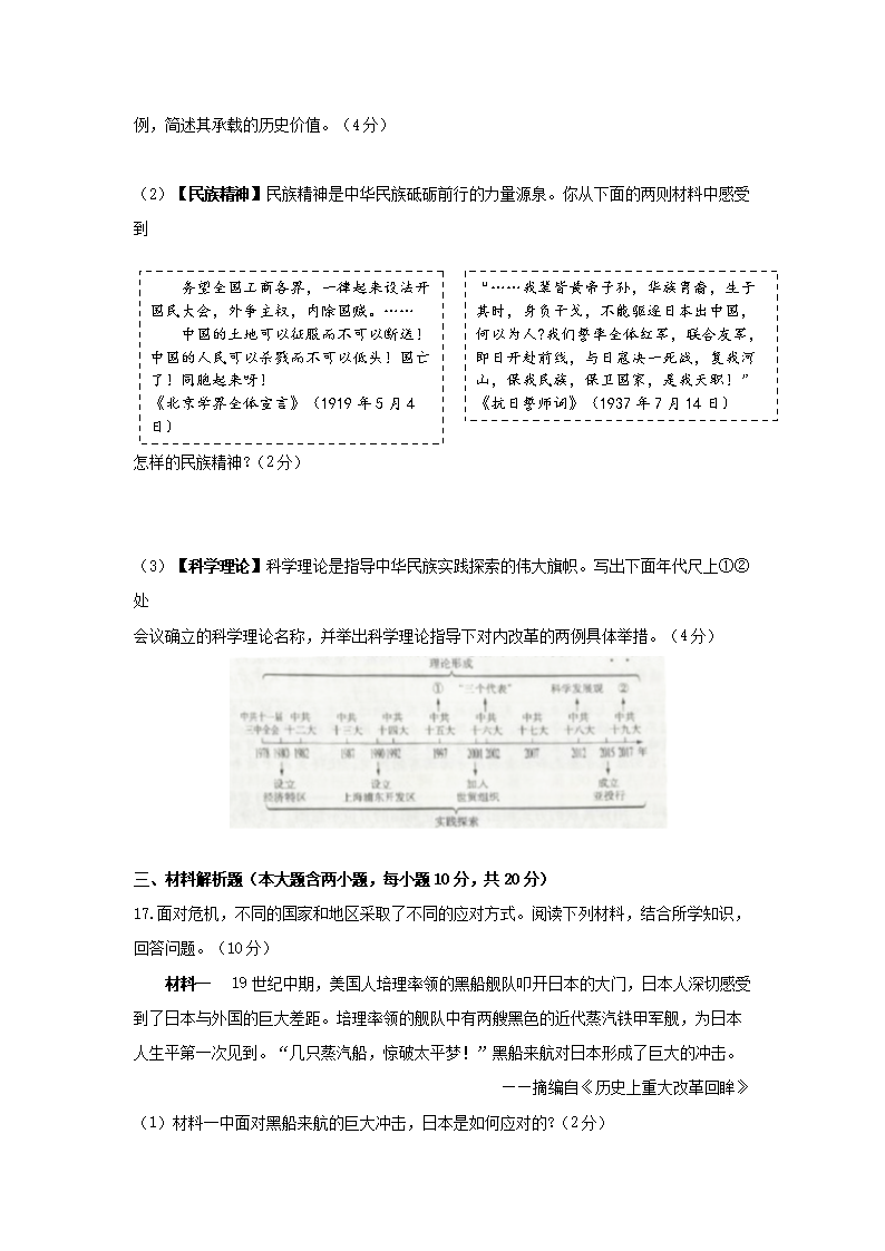 【文档名称】 2019年山西晋城中考历史真题及答案(Word版).doc