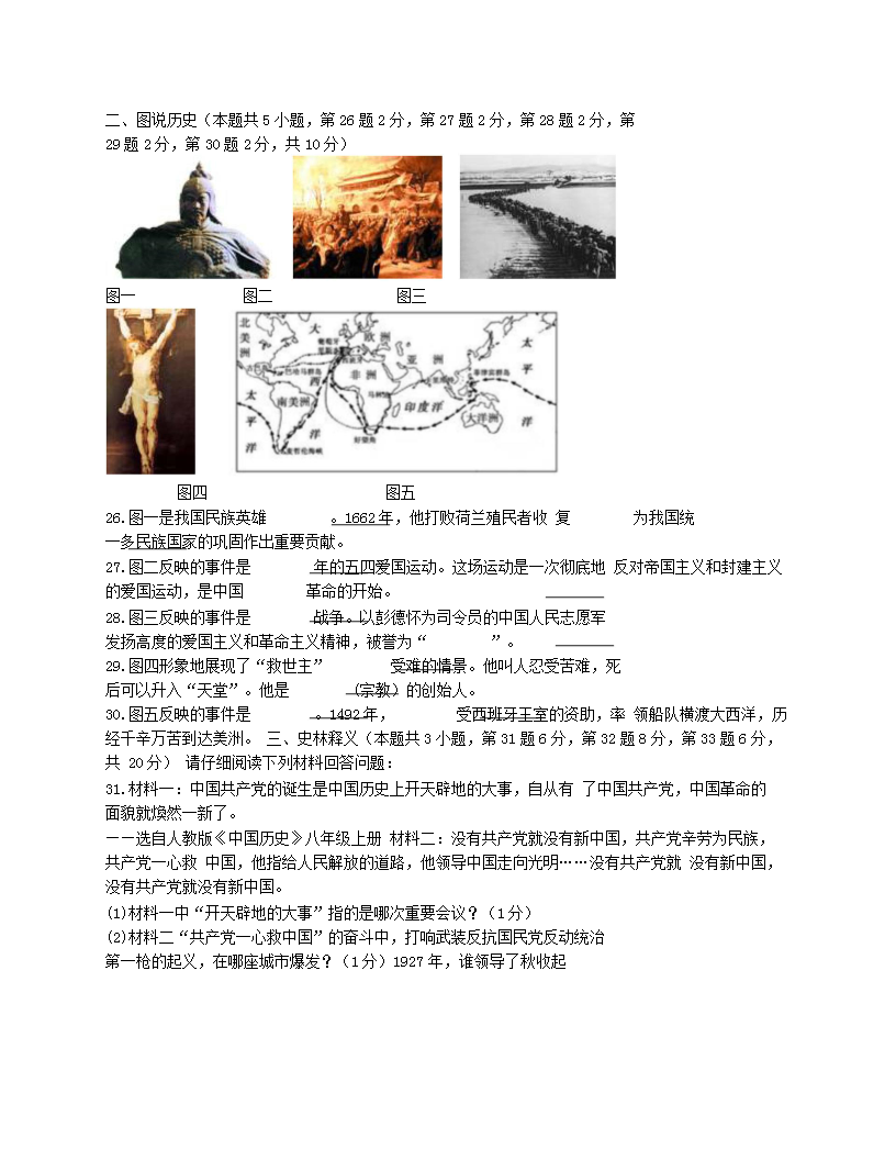 【文档名称】 2015年黑龙江大兴安岭中考历史真题及答案(Word版).doc