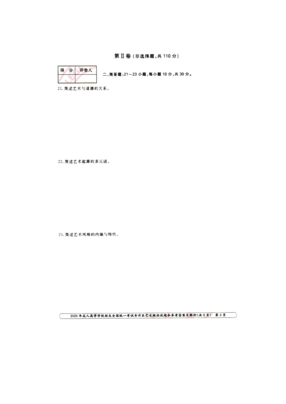 【文档预览】 无忧考网整理发布2020年浙江成人高考专升本艺术概论真题及答案(图片版),前五页预览如下: