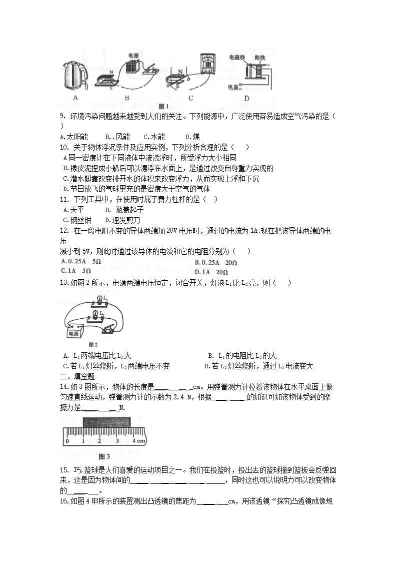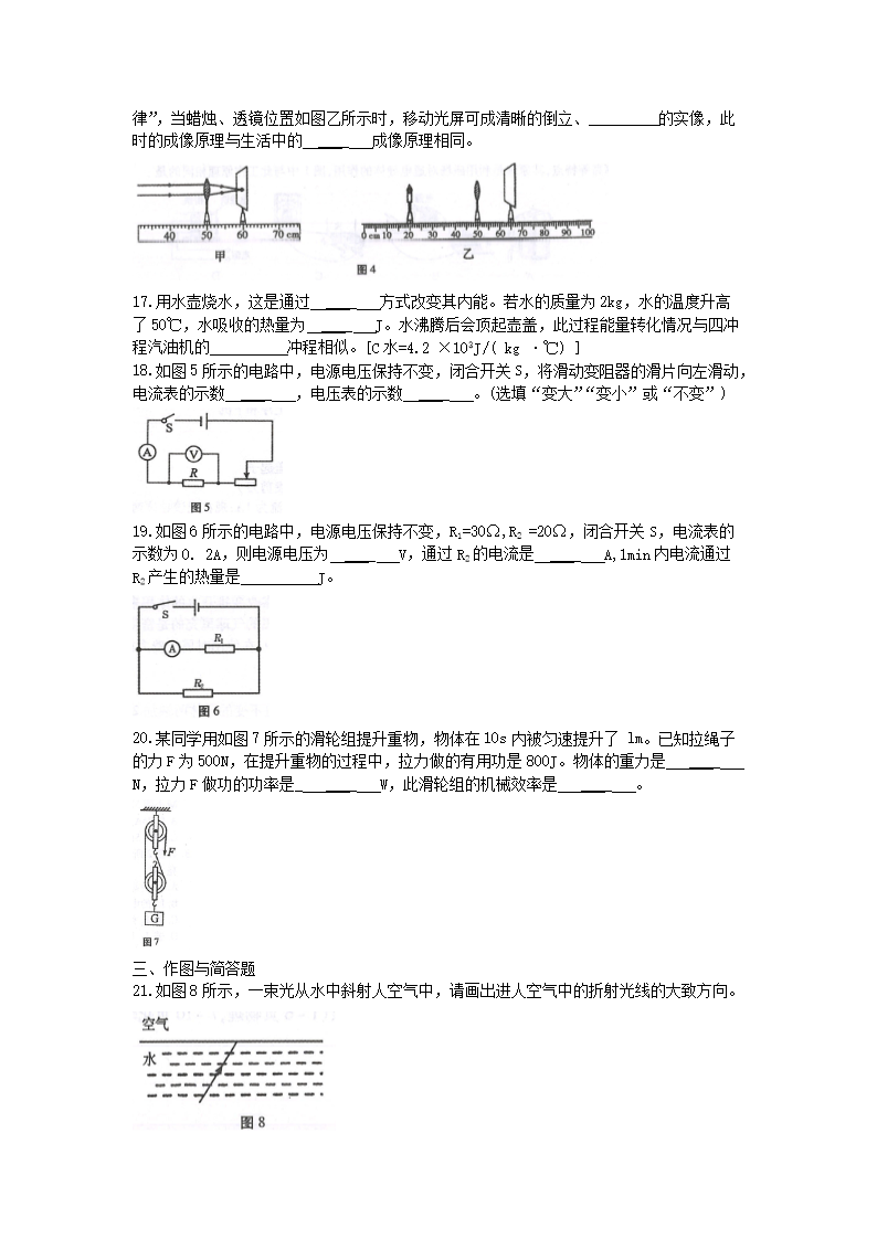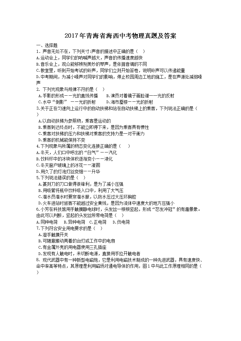 【文档名称】 2017年青海省海西中考物理真题及答案(Word版).doc