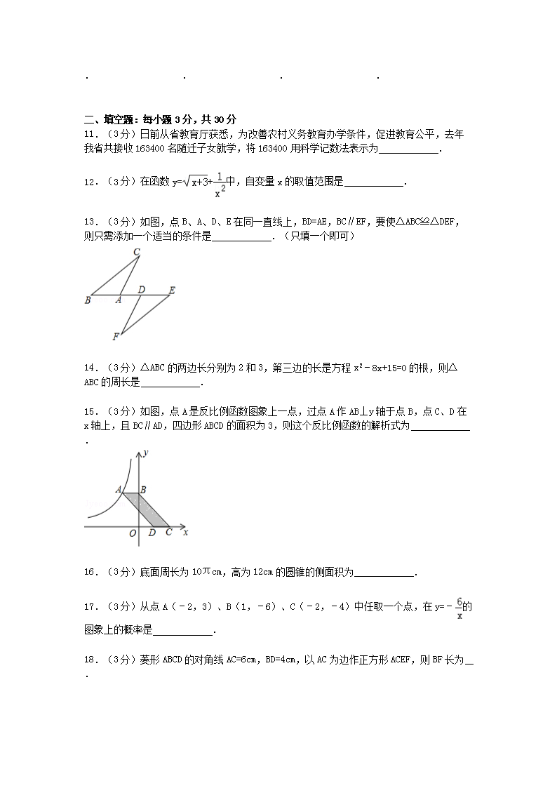 【文档名称】 2015年黑龙江黑河中考数学真题及答案(Word版).doc