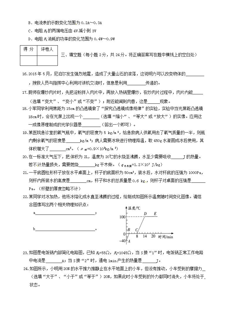 【文档名称】 2015年黑龙江黑河中考物理真题及答案(Word版).doc