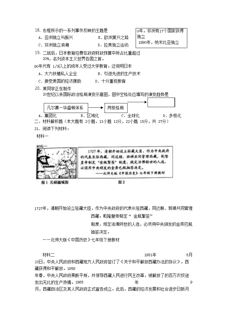 【文档预览】 无忧考网整理发布2016年海南三亚中考历史真题及答案(Word版),前五页预览如下:
