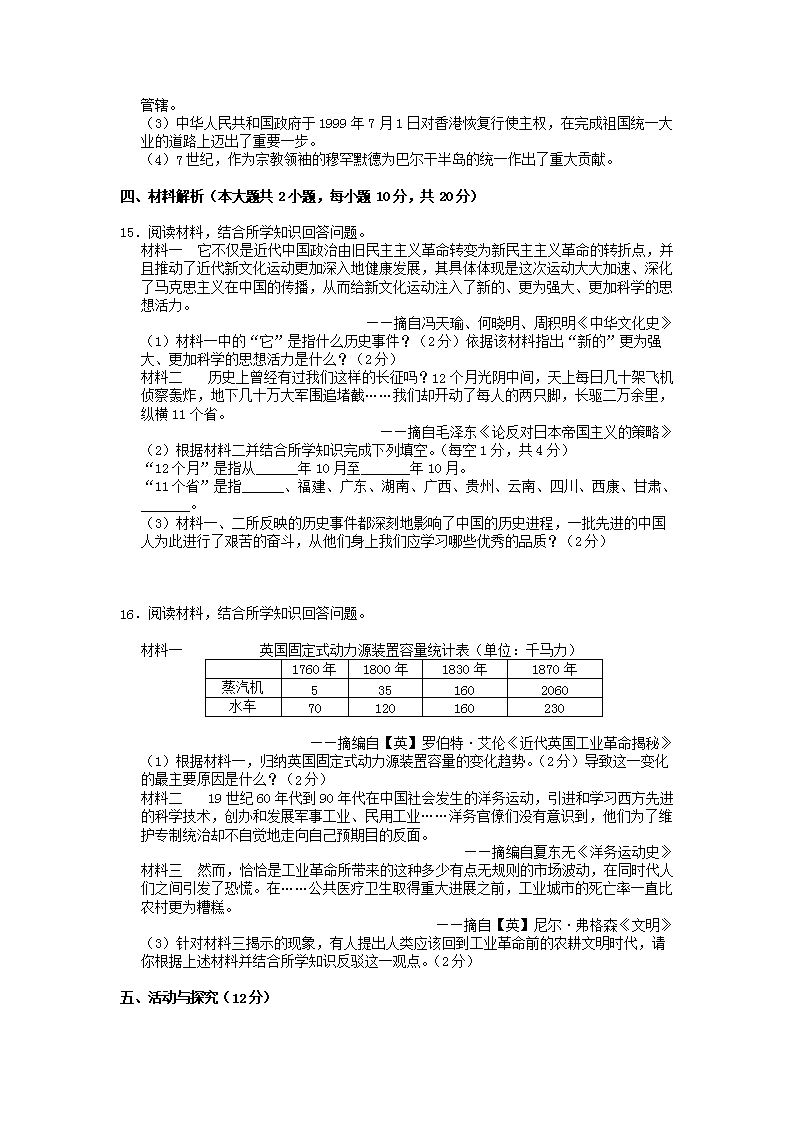 【文档名称】 2015年安徽巢湖中考历史真题及答案(Word版).doc