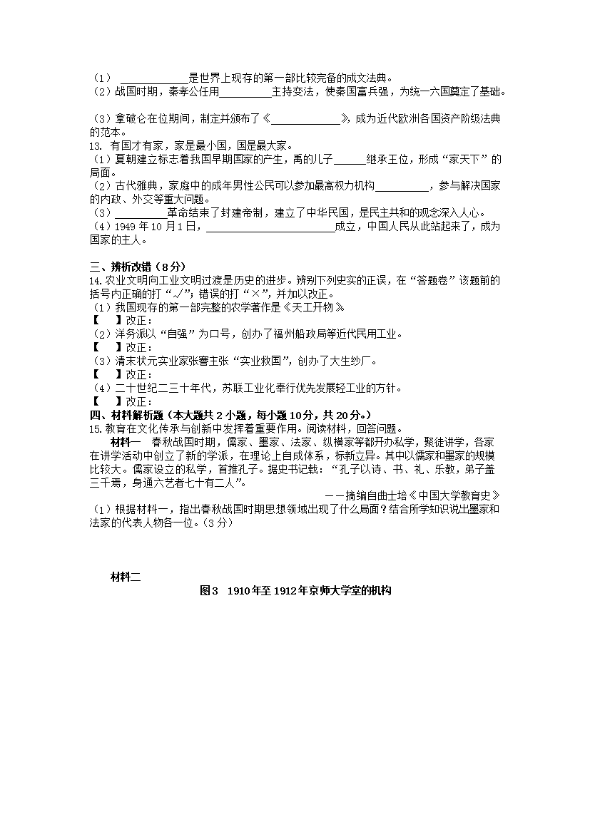 【文档名称】 2016年安徽黄山中考历史真题及答案(Word版).doc