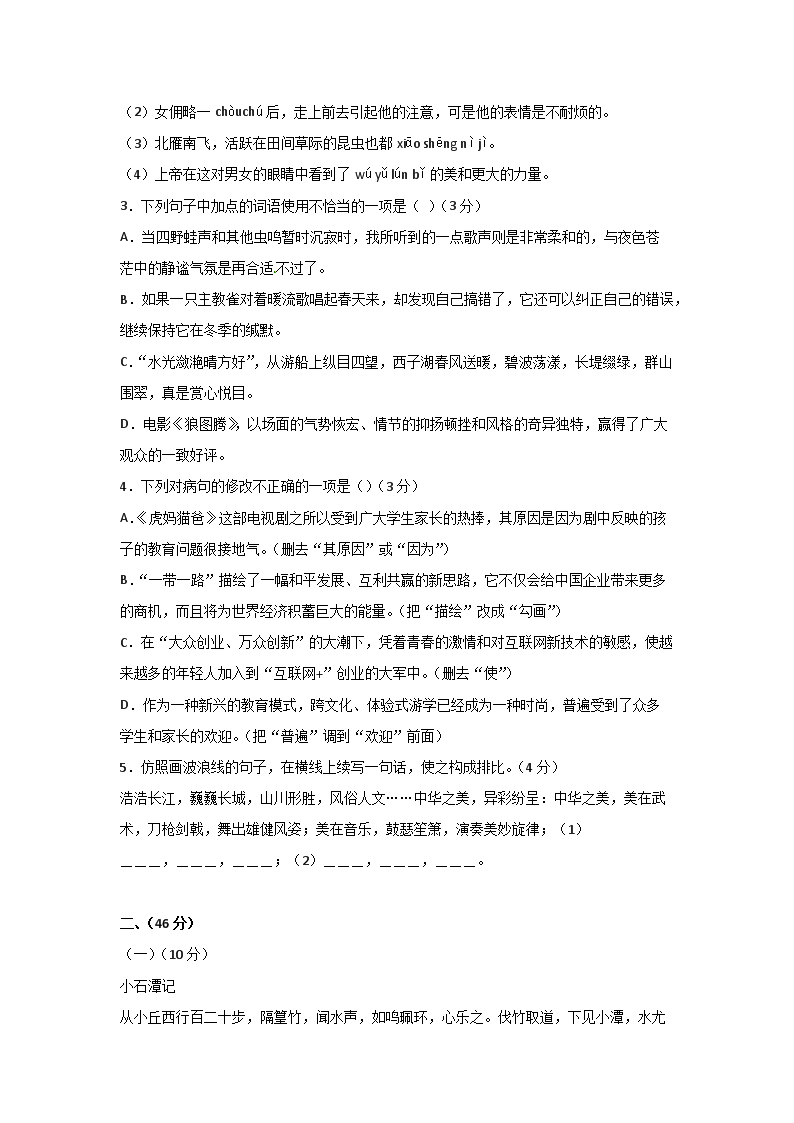 【文档预览】 无忧考网整理发布2015年广东省韶关市中考语文真题及答案(Word版),前五页预览如下: