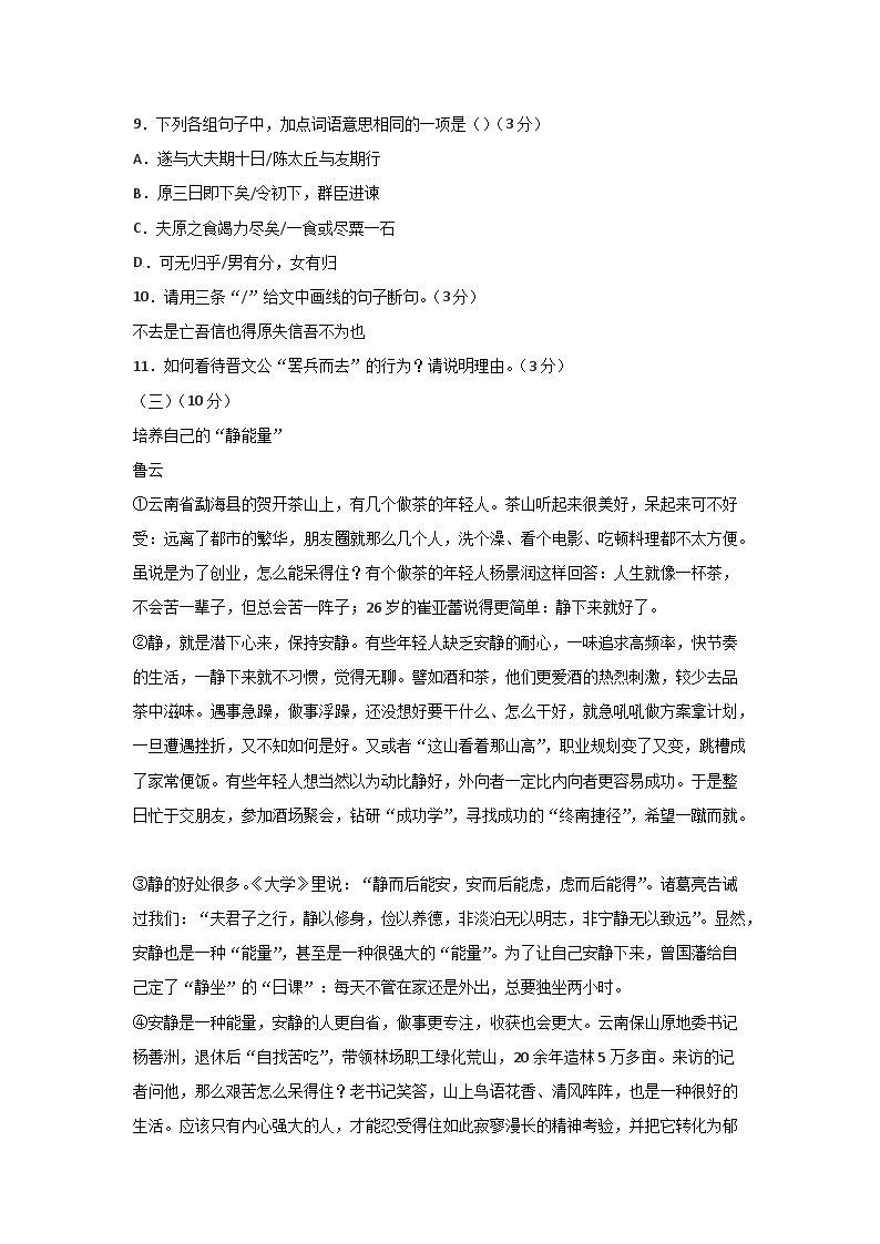 【文档名称】 2015年广东省韶关市中考语文真题及答案(Word版).doc