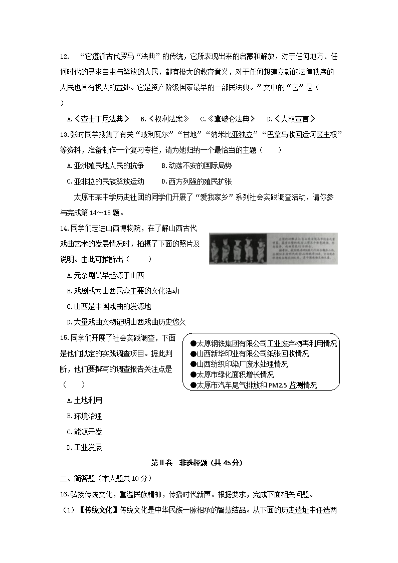【文档名称】 2019年山西阳泉中考历史真题及答案(Word版).doc