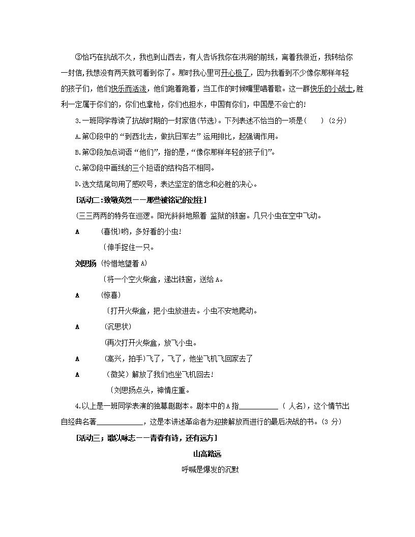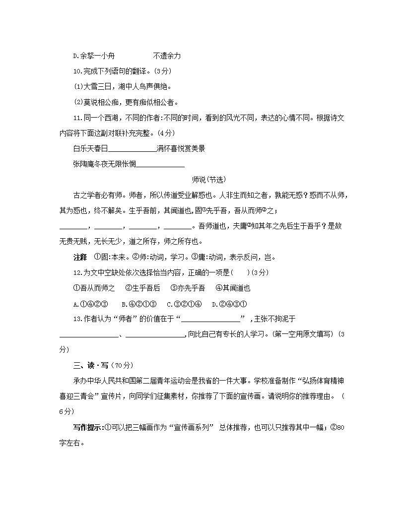 【文档名称】 2019年山西阳泉中考语文真题及答案(Word版).doc
