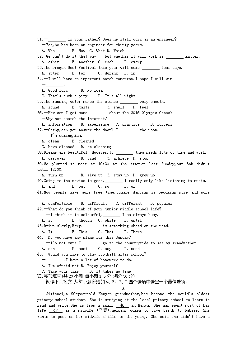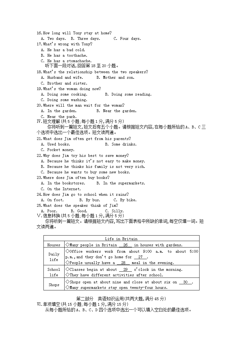 【文档名称】 2015年安徽淮南中考英语真题及答案(Word版).doc
