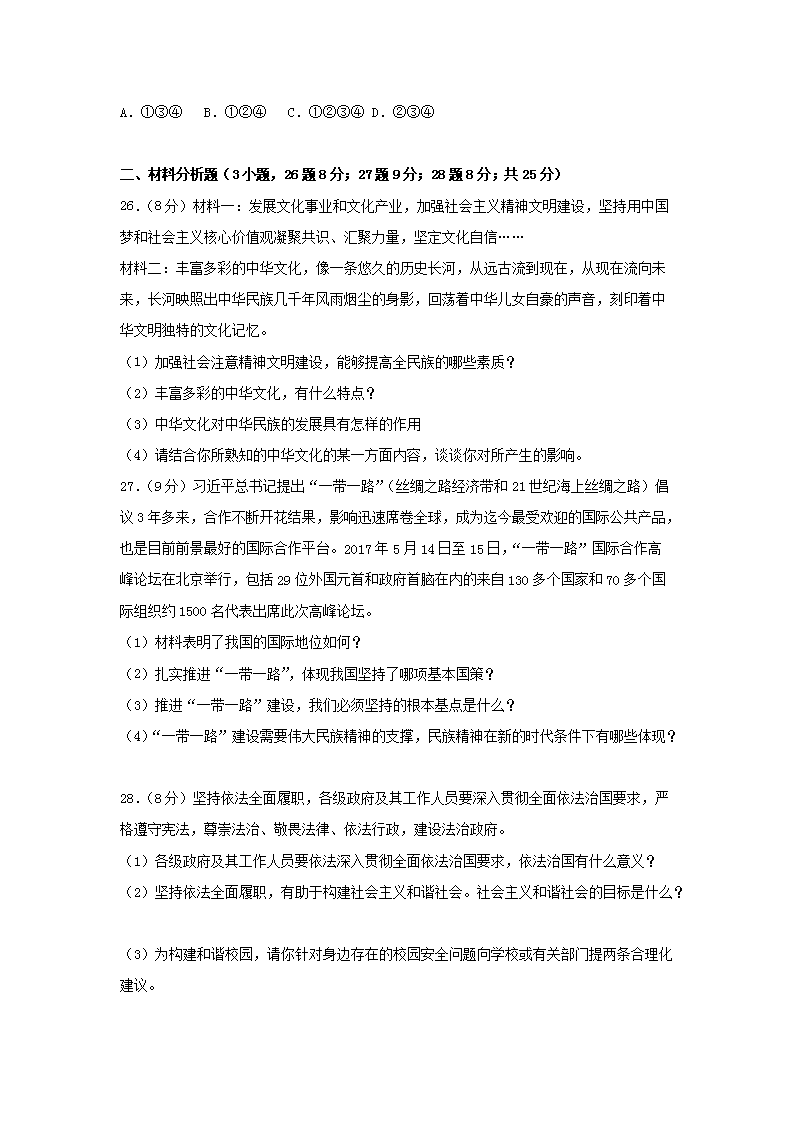 【文档名称】 2017辽宁省辽阳市中考政治真题及答案(Word版).doc