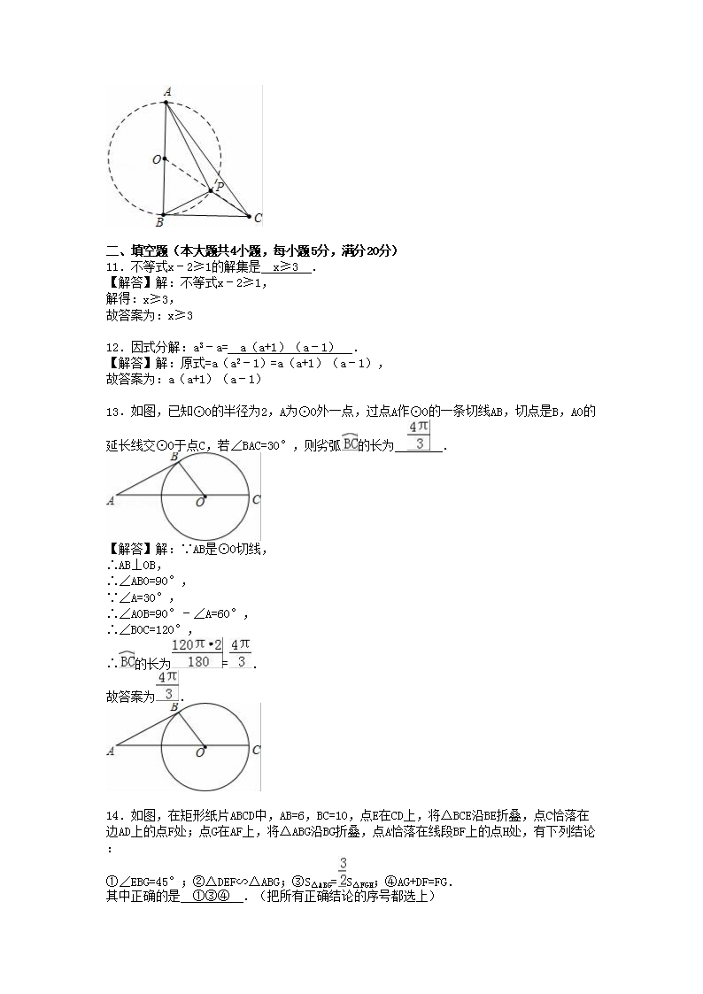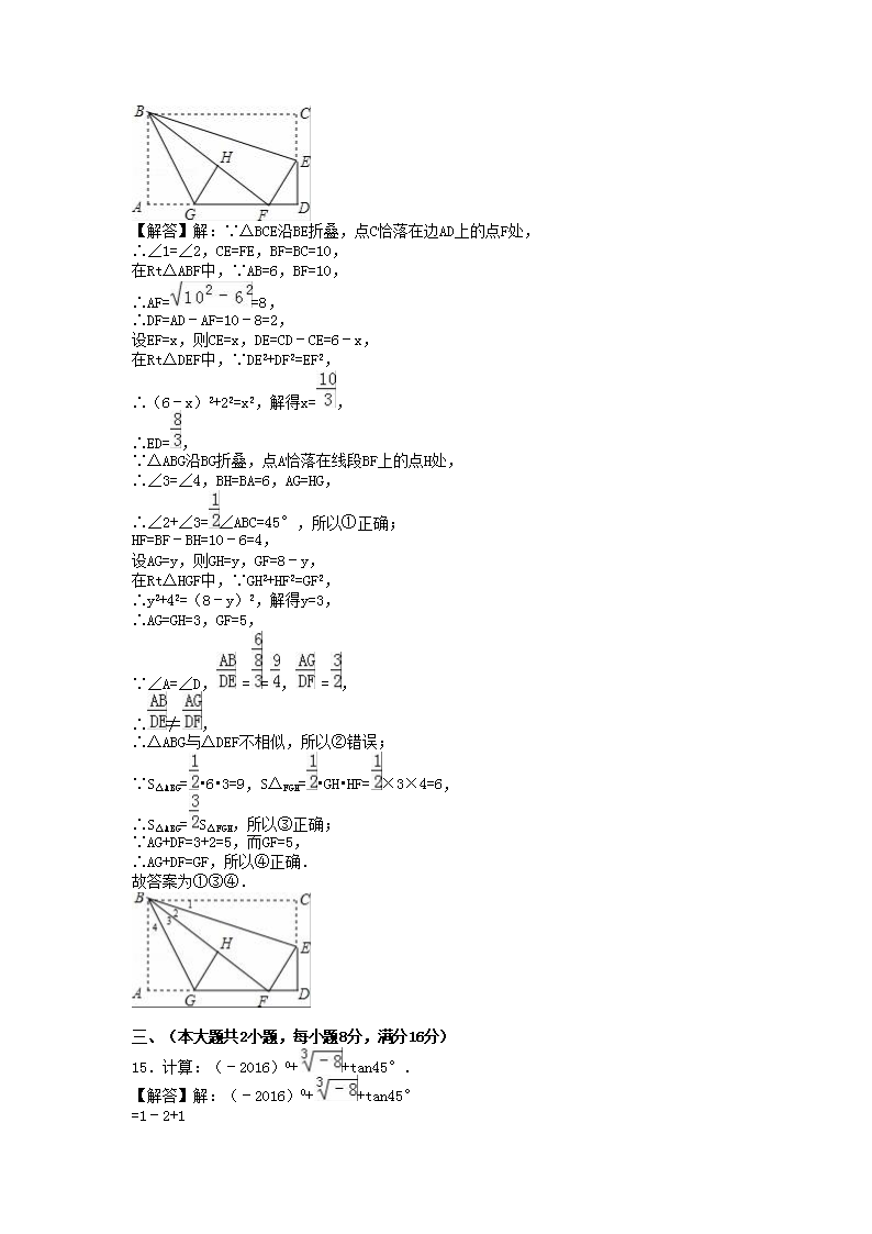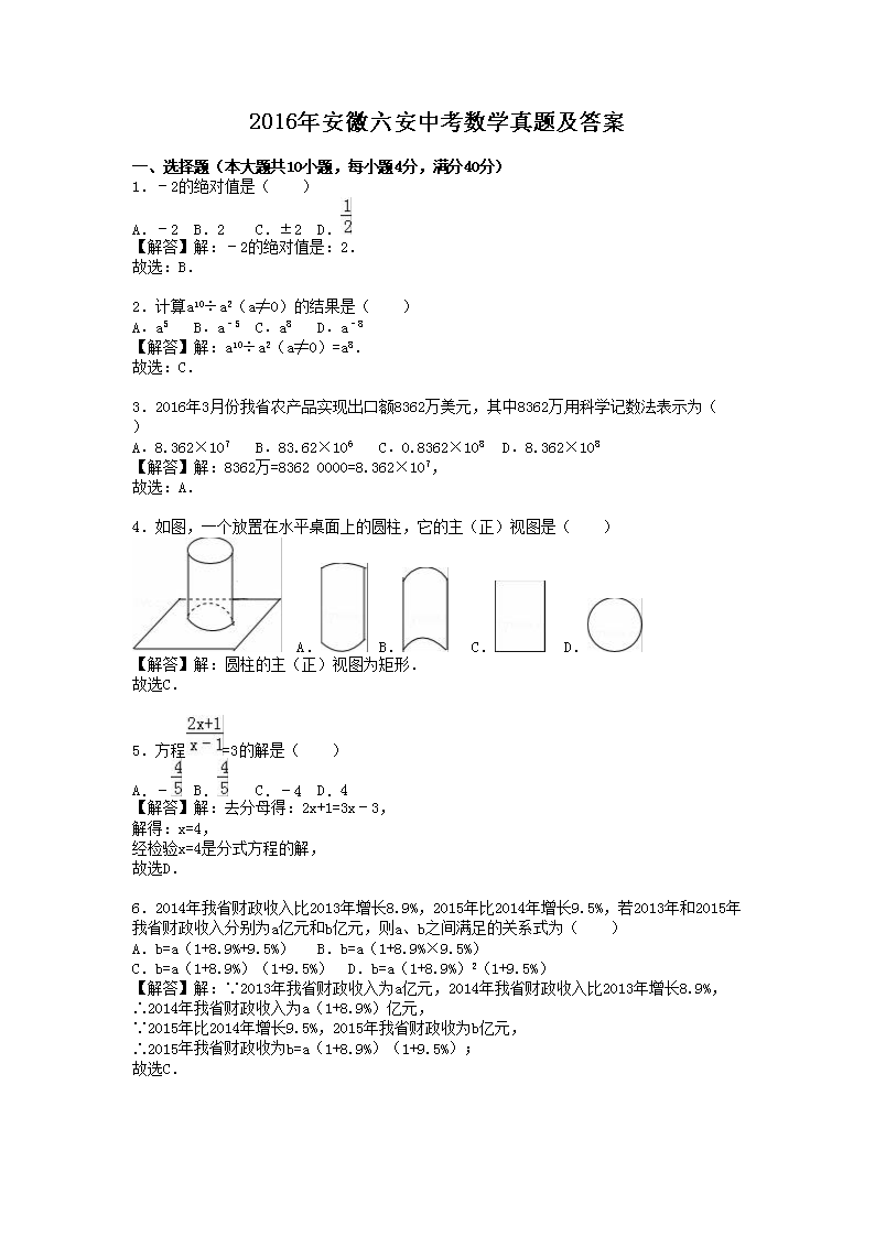 【文档名称】 2016年安徽六安中考数学真题及答案(Word版).doc