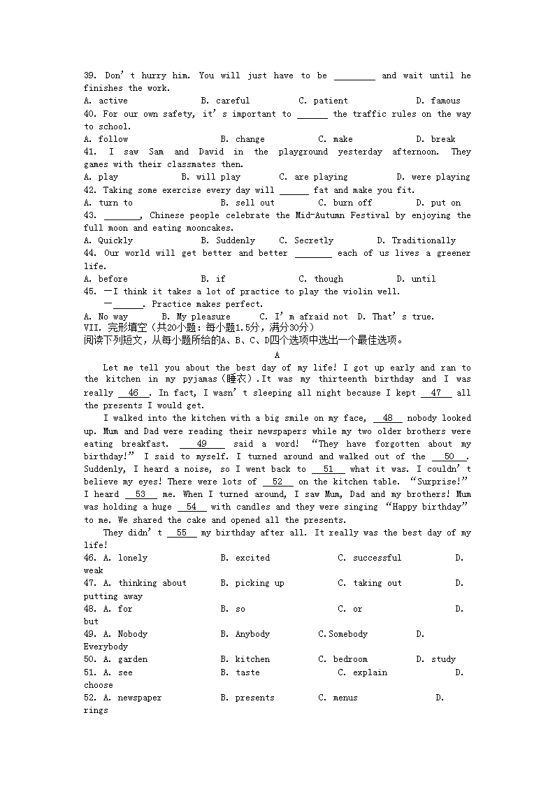 【文档名称】 2016年安徽六安中考英语真题及答案(Word版).doc