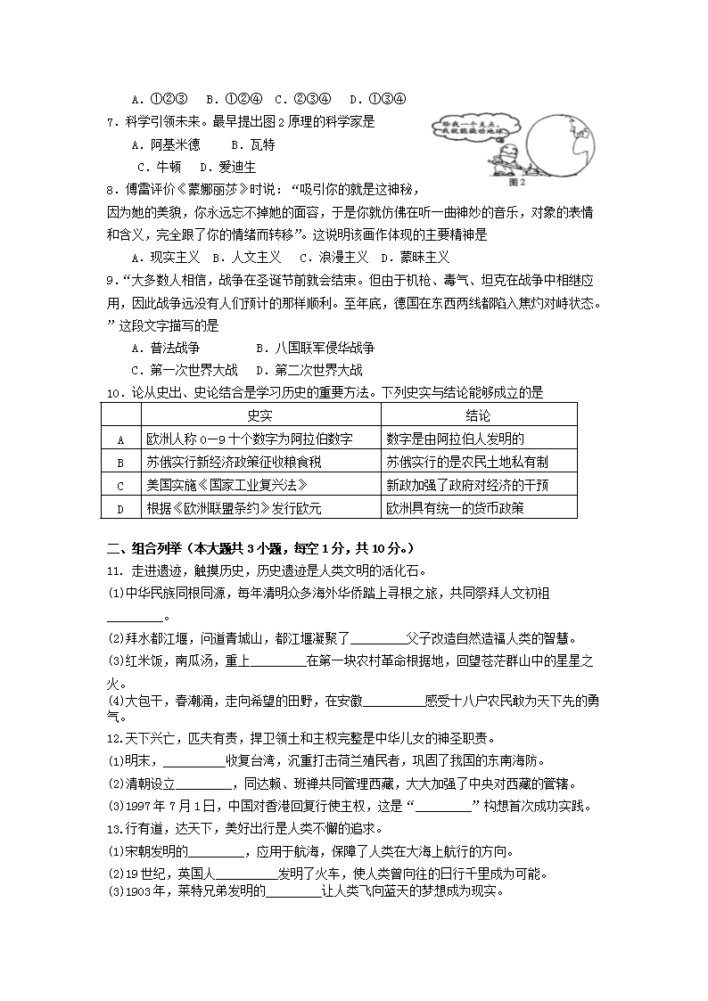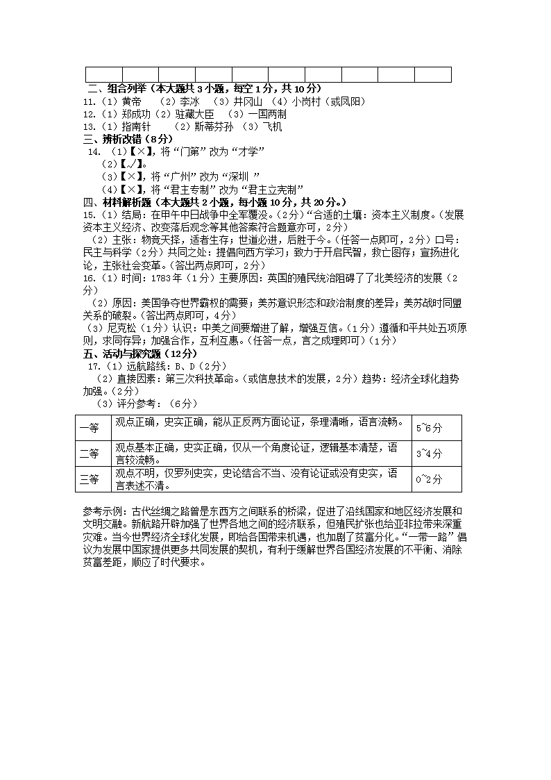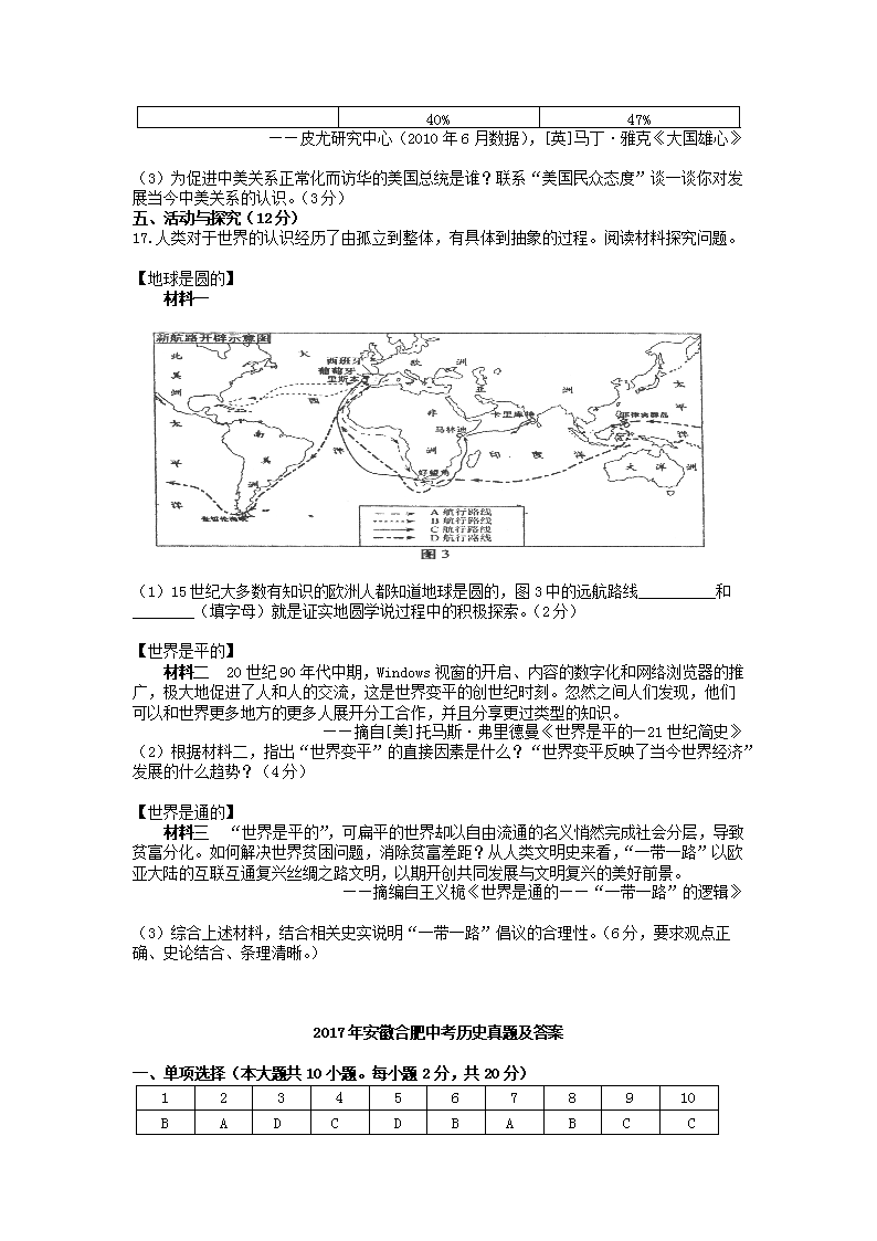【文档名称】 2017年安徽合肥中考历史真题及答案(Word版).doc