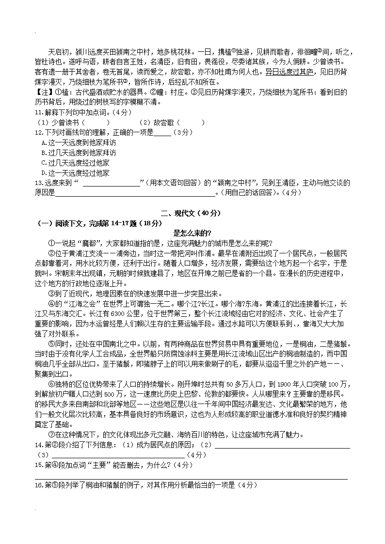 【文档名称】 2019年上海嘉定中考语文考试真题及答案(Word版).doc