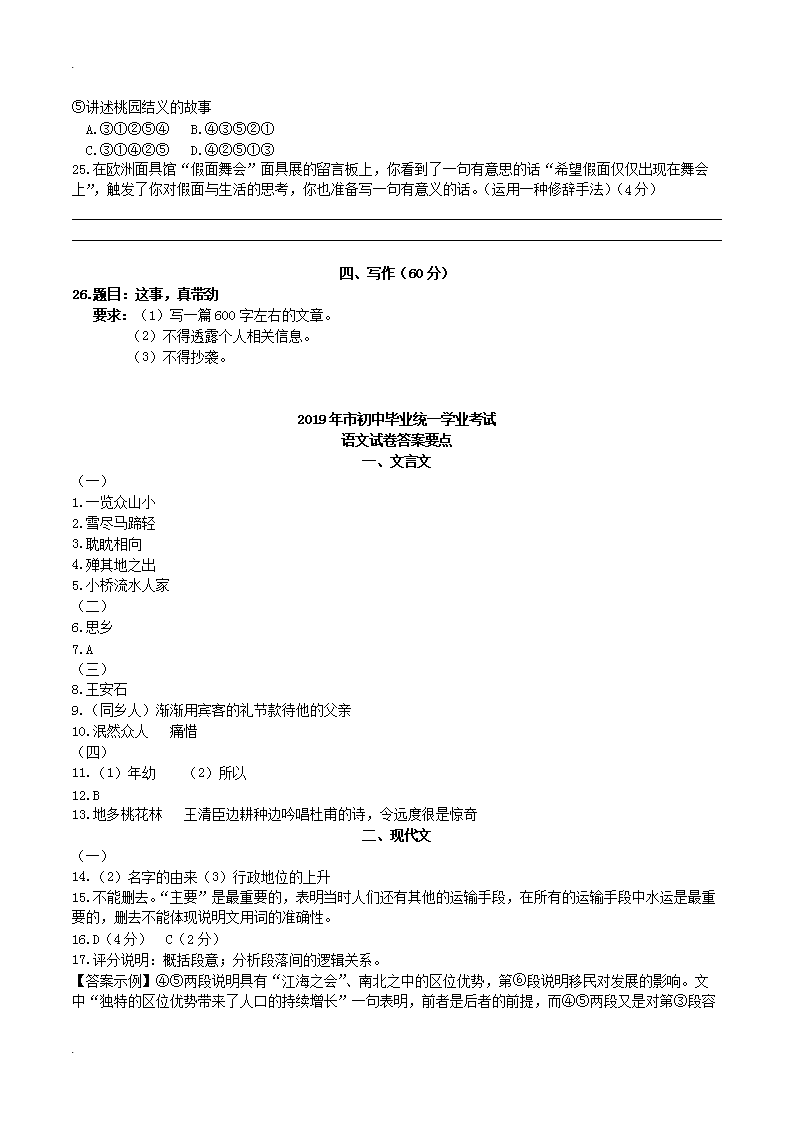 【文档预览】 无忧考网整理发布2019年上海金山中考语文考试真题及答案(Word版),前五页预览如下: