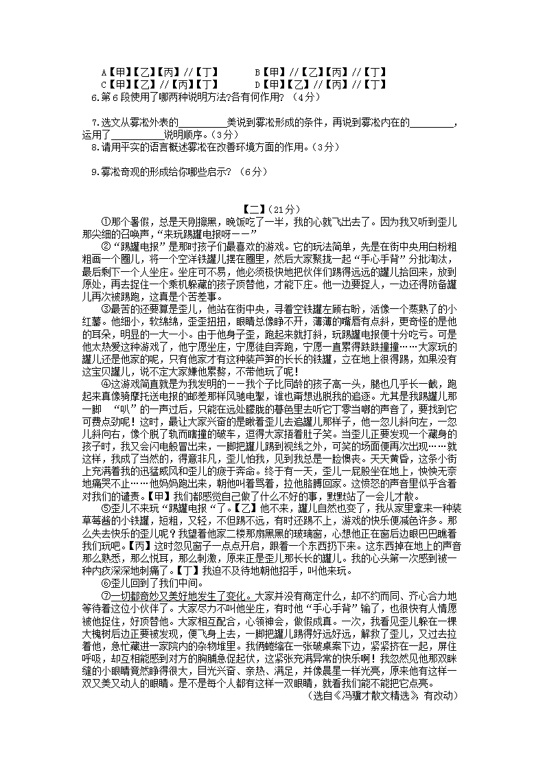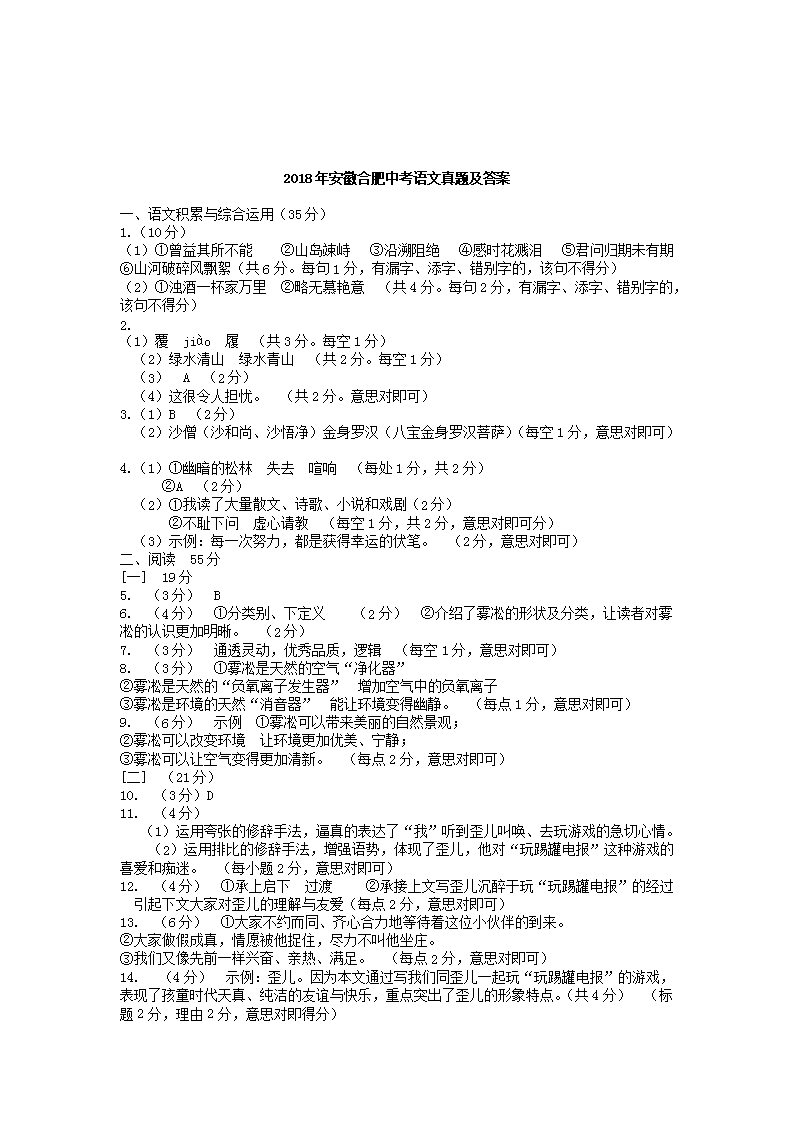 【文档预览】 无忧考网整理发布2018年安徽合肥中考语文真题及答案(Word版),前五页预览如下: