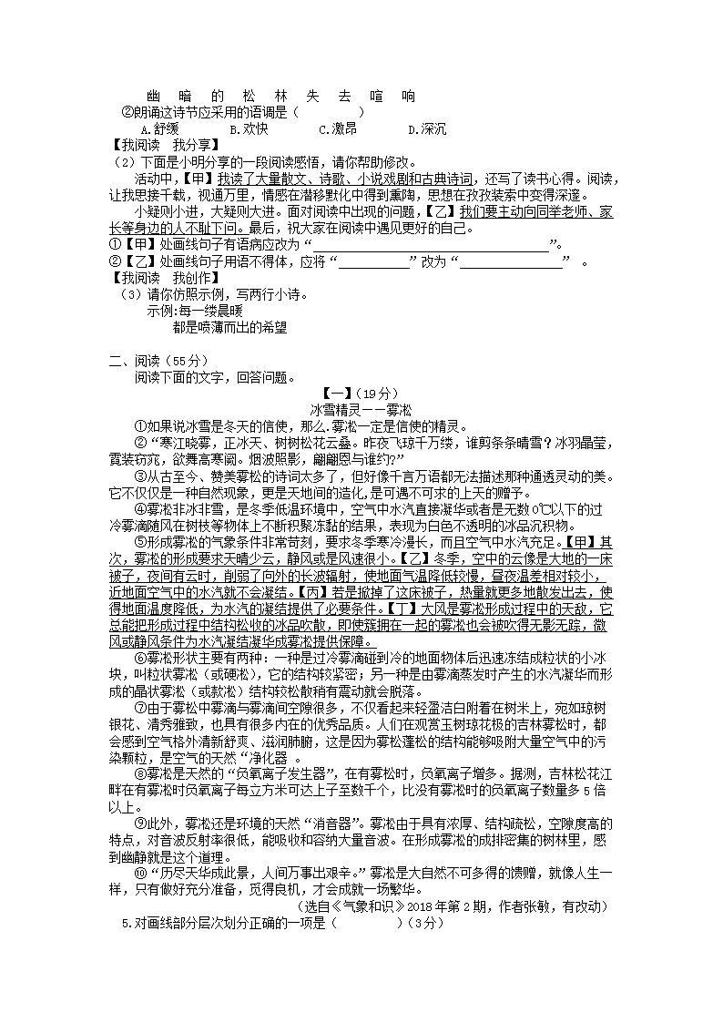 【文档名称】 2018年安徽合肥中考语文真题及答案(Word版).doc