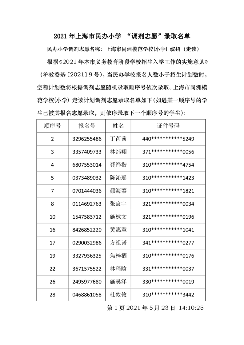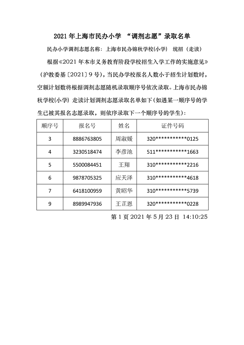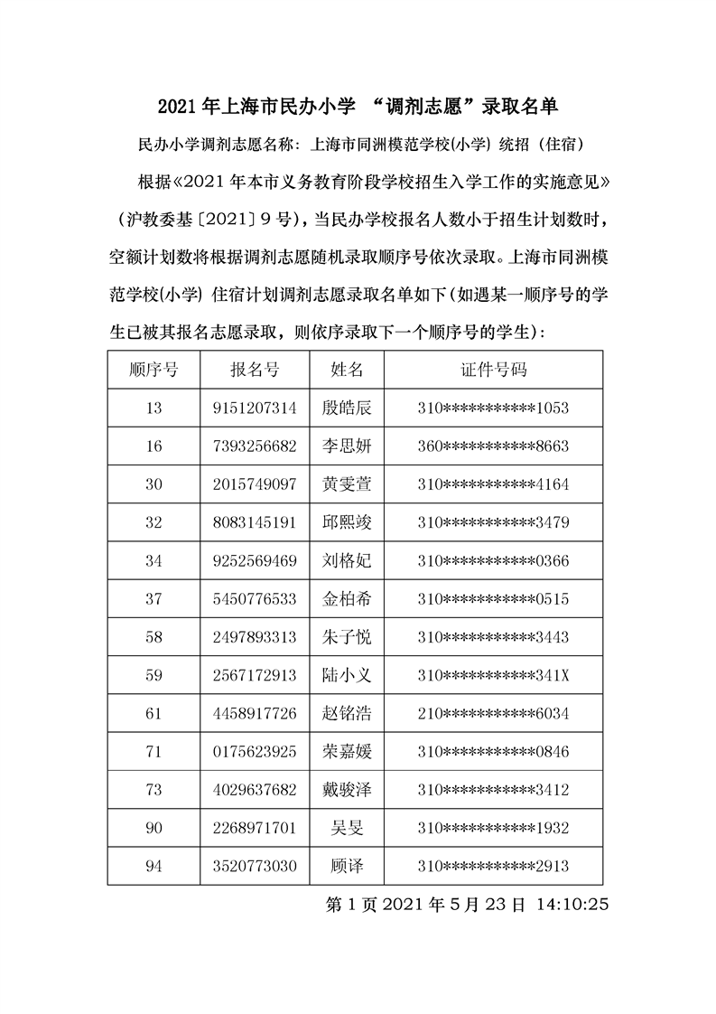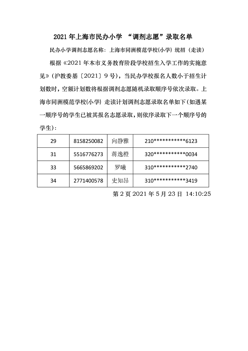 从上海市宝山区人民政府了解到,2021年上海市民办小学“调剂志愿”录取名单已经发布,为方便考生了解情况,现将录取名单整理如下: